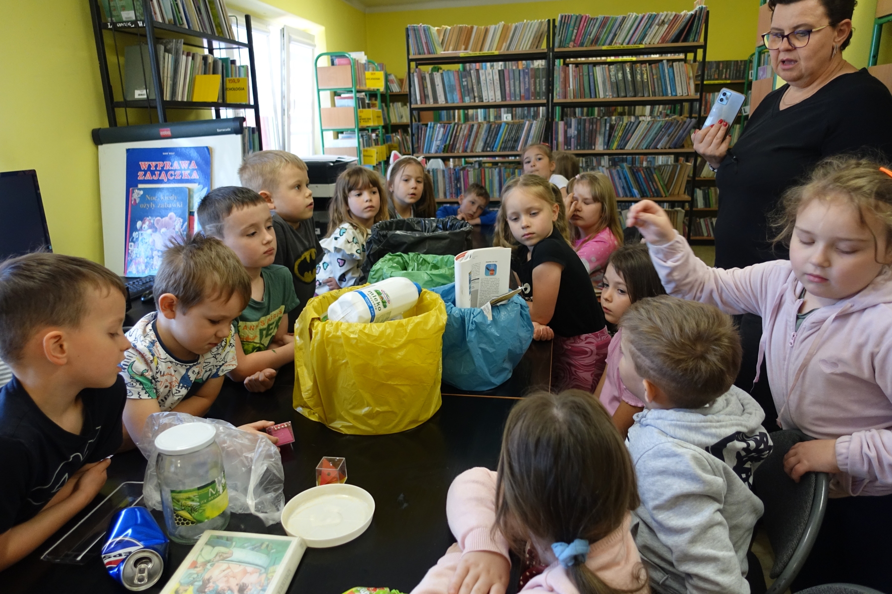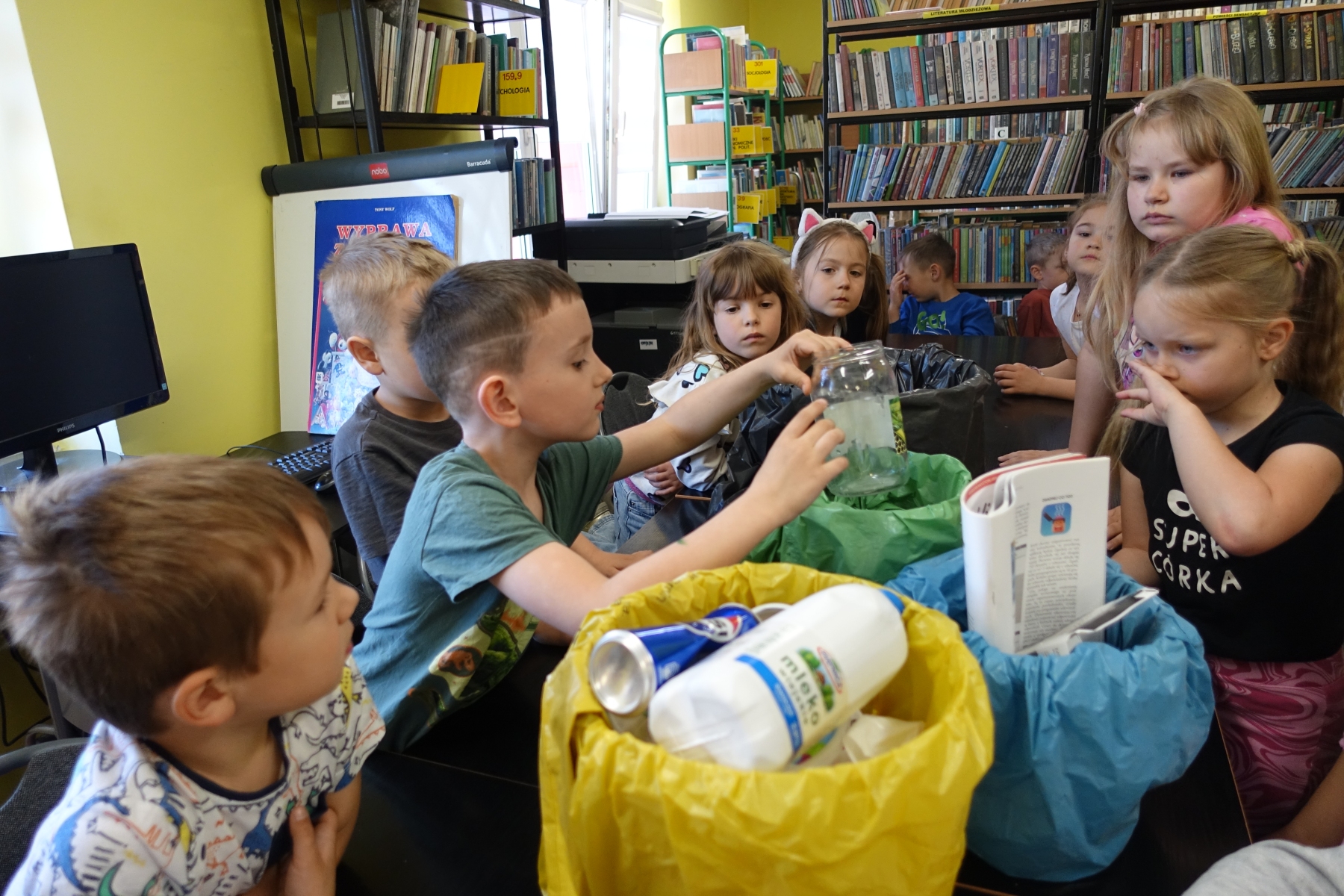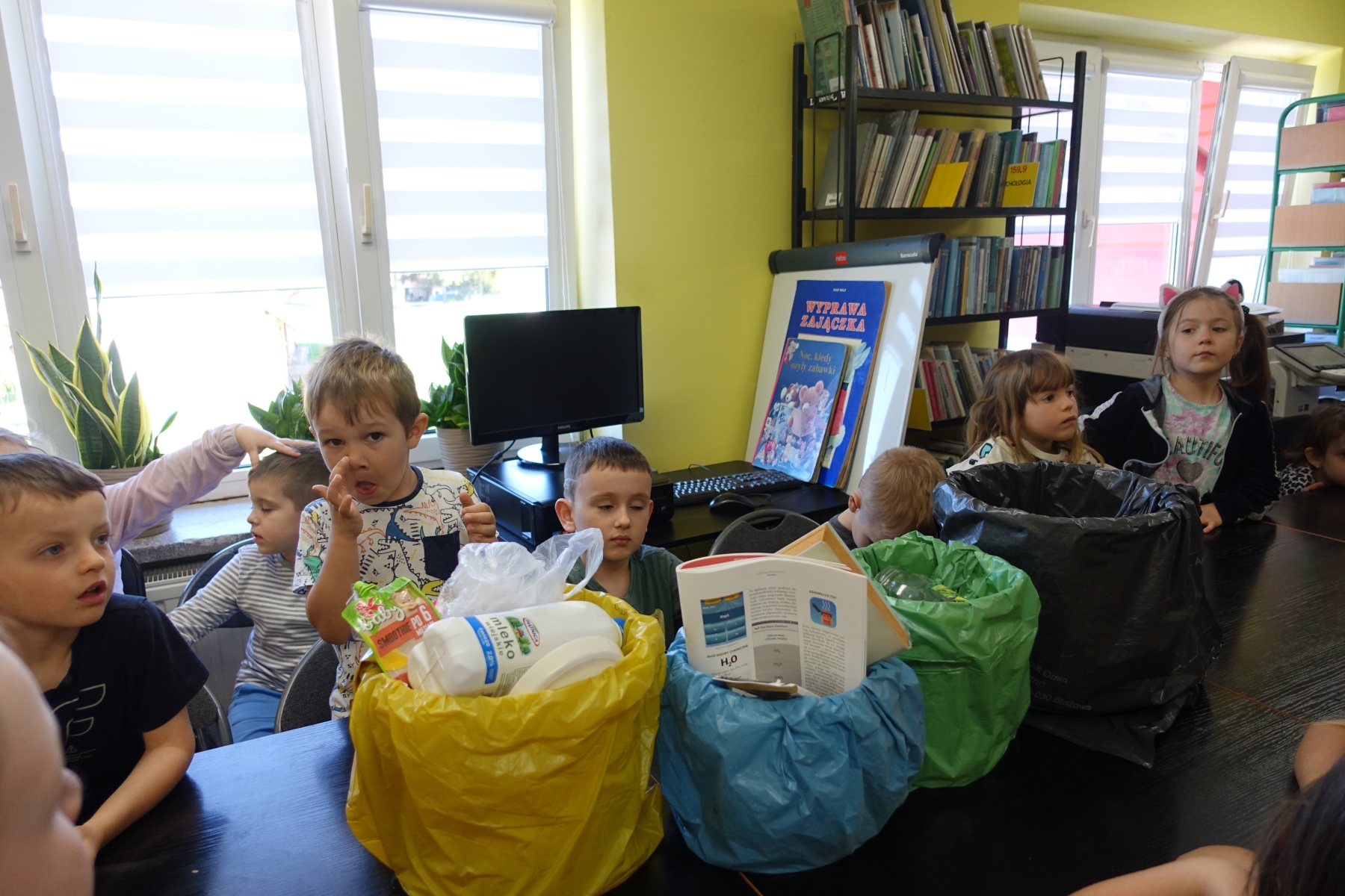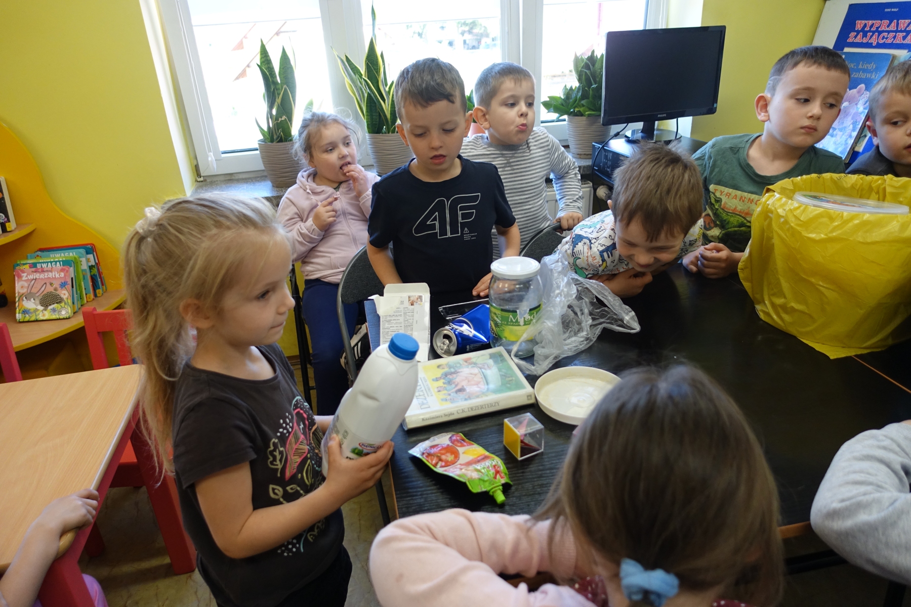 Celem zajęć z przedszkolakami było kształtowanie świadomości ekologicznej związanej dbaniem o środowisko i segregowaniem śmieci. Po wysłuchaniu bajeczki „Dobre rady na złe odpady, czyli ekologiczny Czerwony Kapturek zadaniem dzieci było przyporządkowanie odpadów do właściwych pojemników. Wytłumaczenie słowa recykling i uświadomienie dzieciom jak ważna jest segregacja odpadów to kolejny omawiany temat.