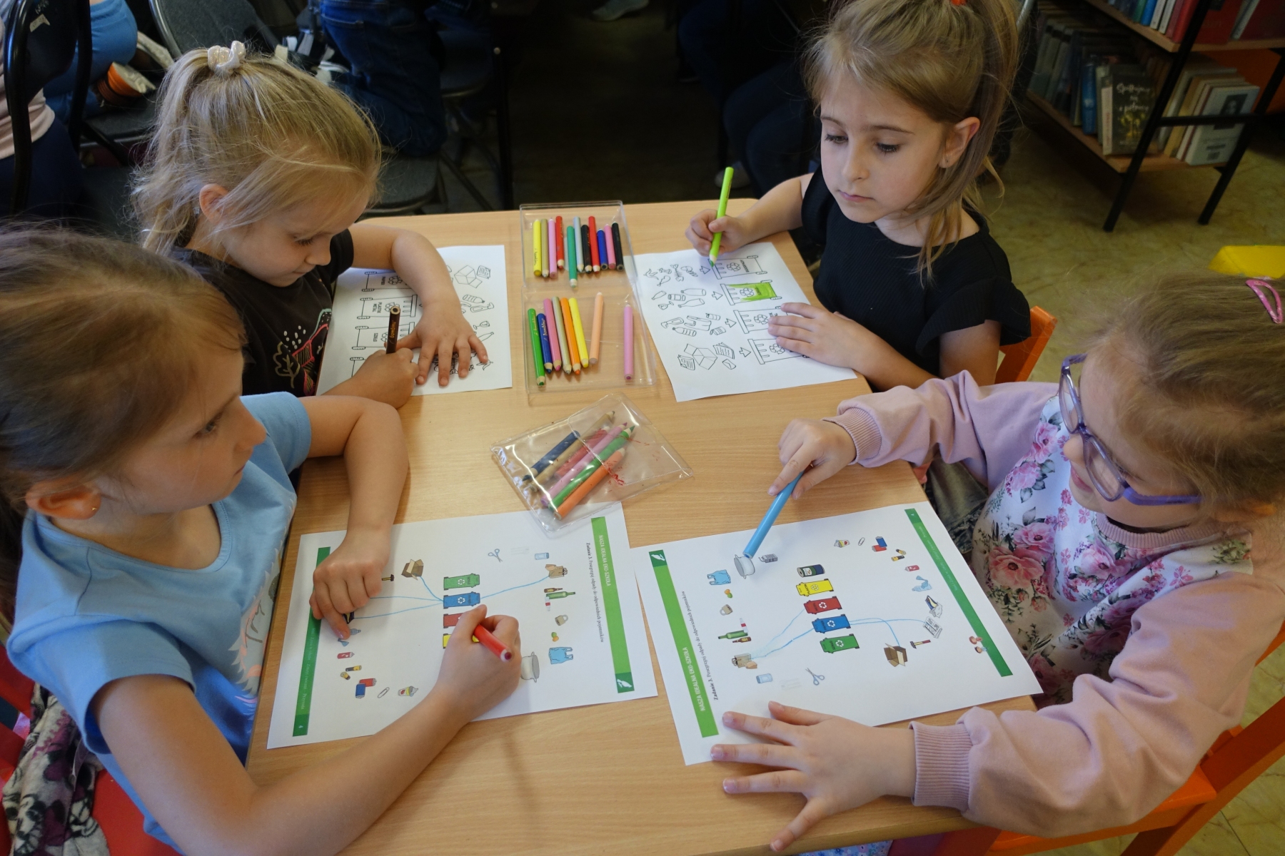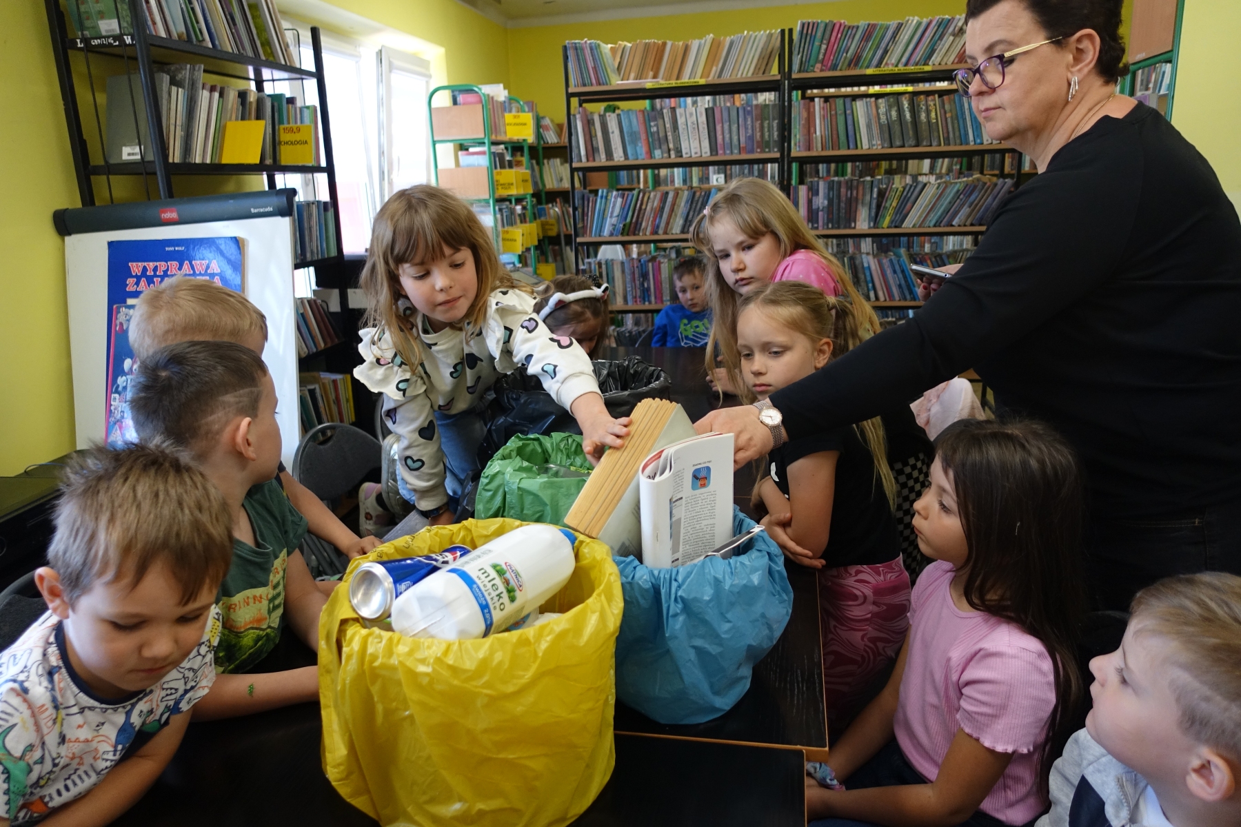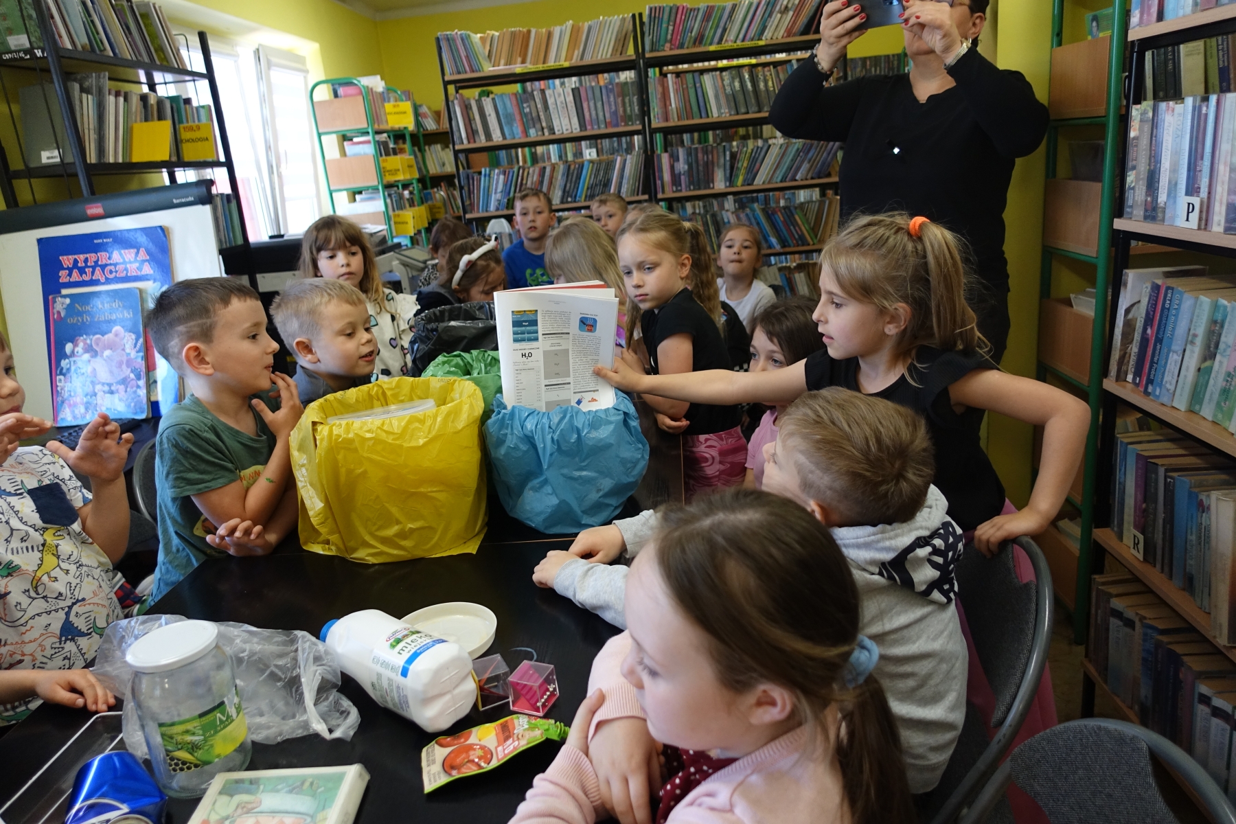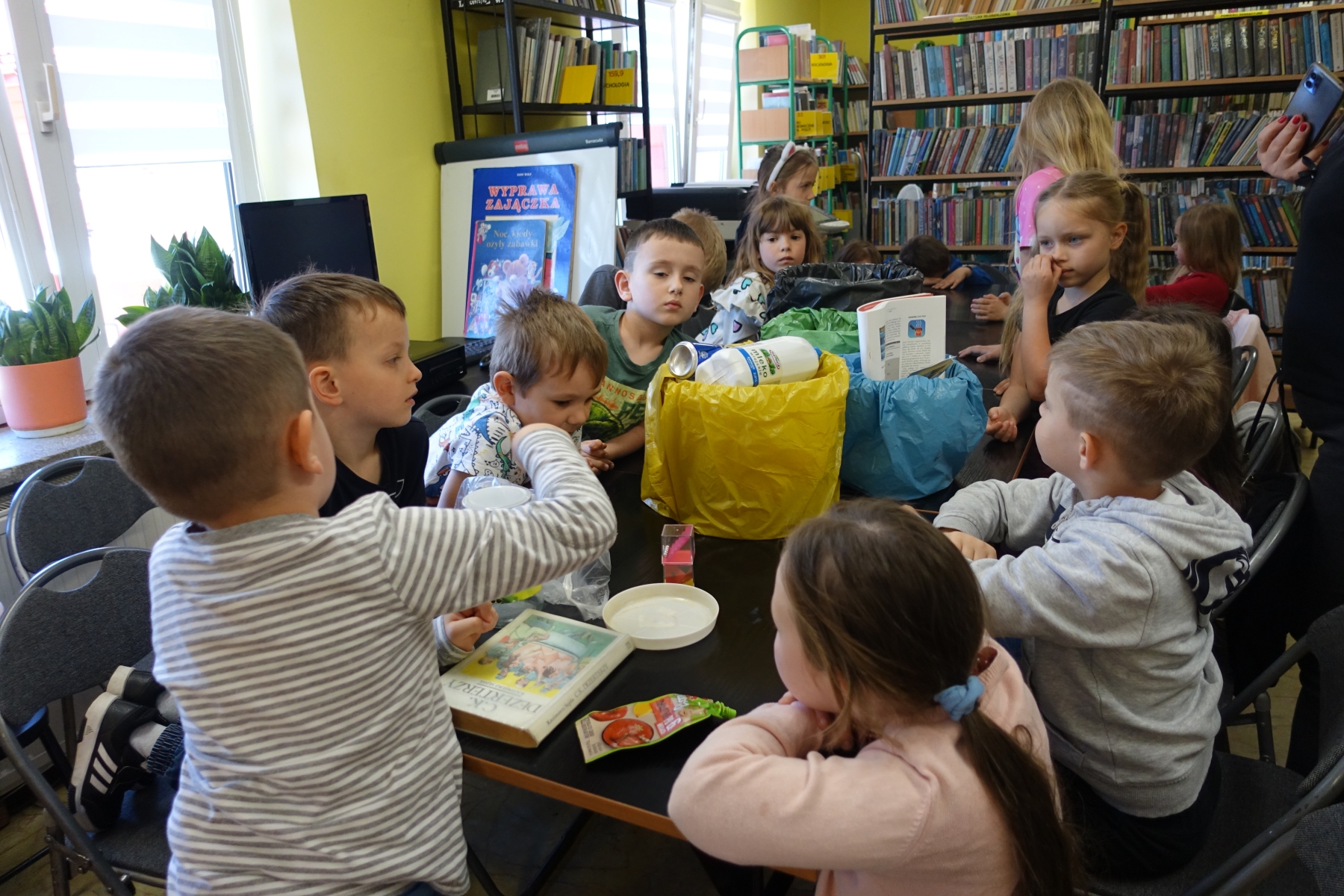 Celem zajęć z przedszkolakami było kształtowanie świadomości ekologicznej związanej dbaniem o środowisko i segregowaniem śmieci. Po wysłuchaniu bajeczki „Dobre rady na złe odpady, czyli ekologiczny Czerwony Kapturek zadaniem dzieci było przyporządkowanie odpadów do właściwych pojemników. Wytłumaczenie słowa recykling i uświadomienie dzieciom jak ważna jest segregacja odpadów to kolejny omawiany temat.