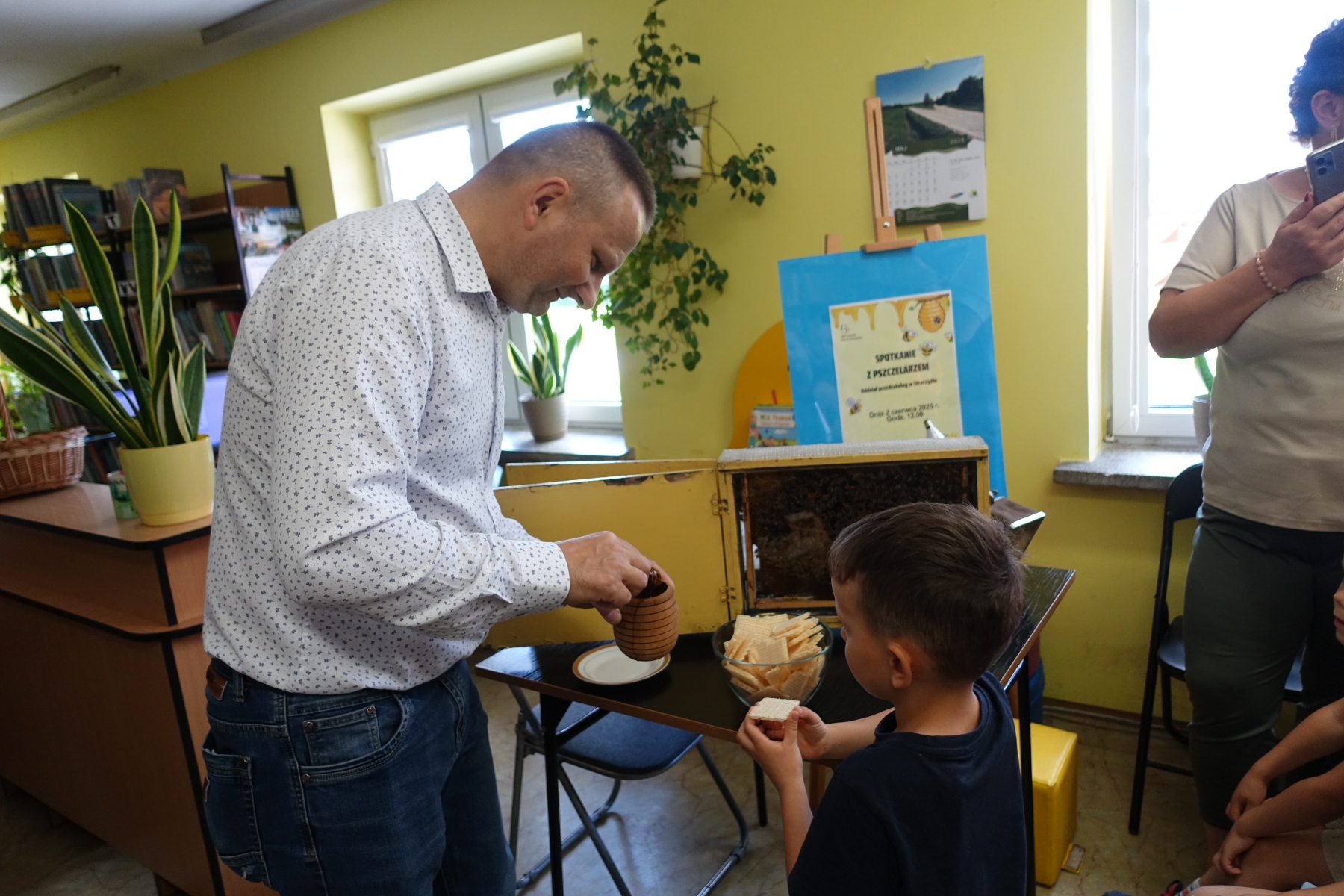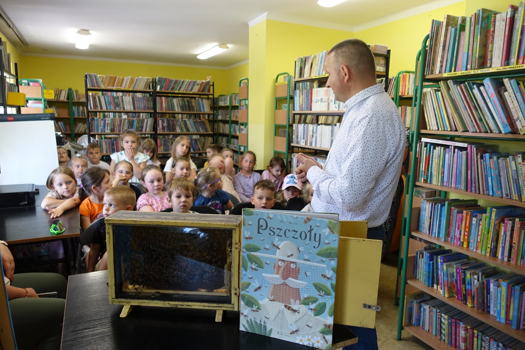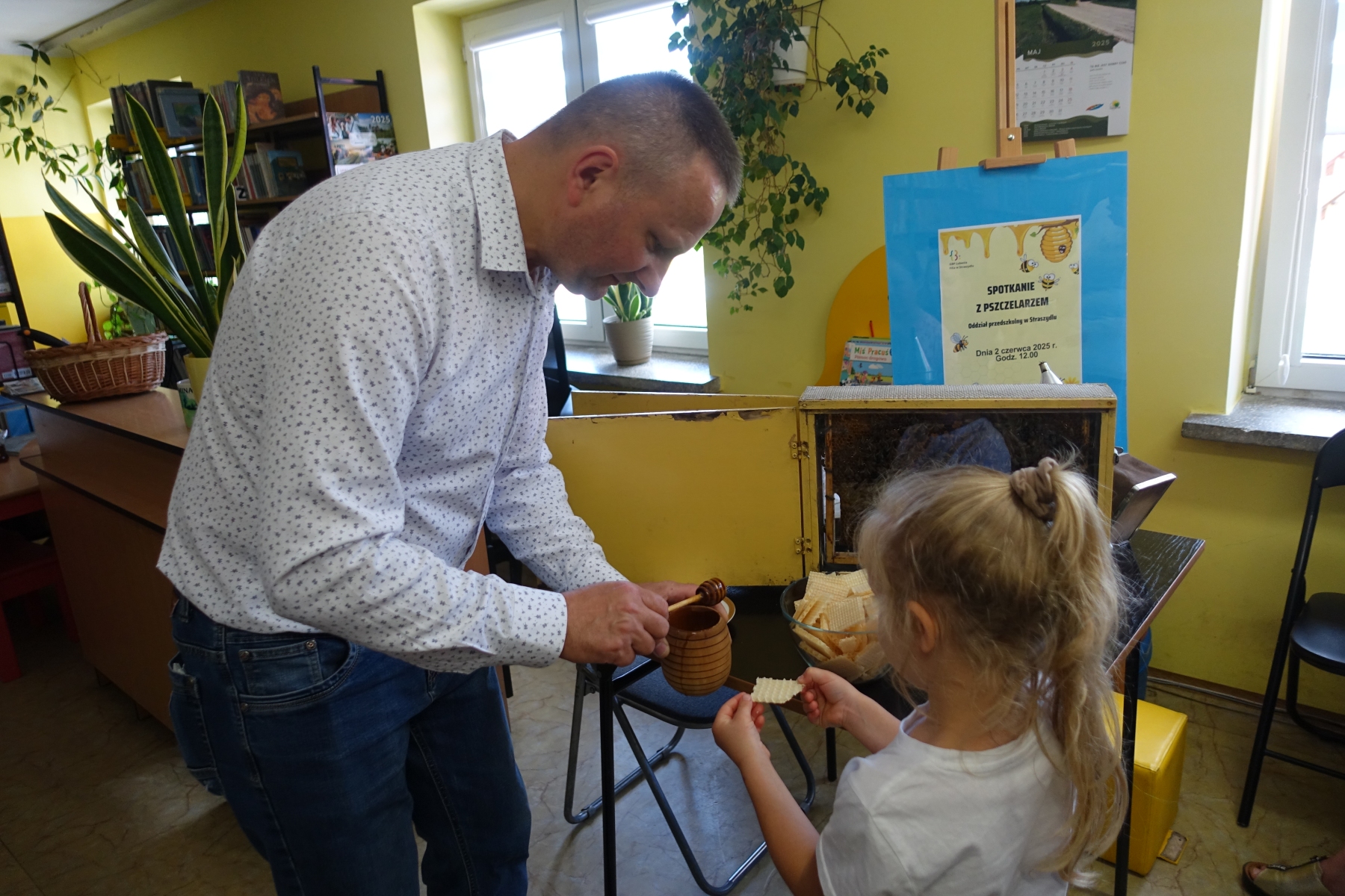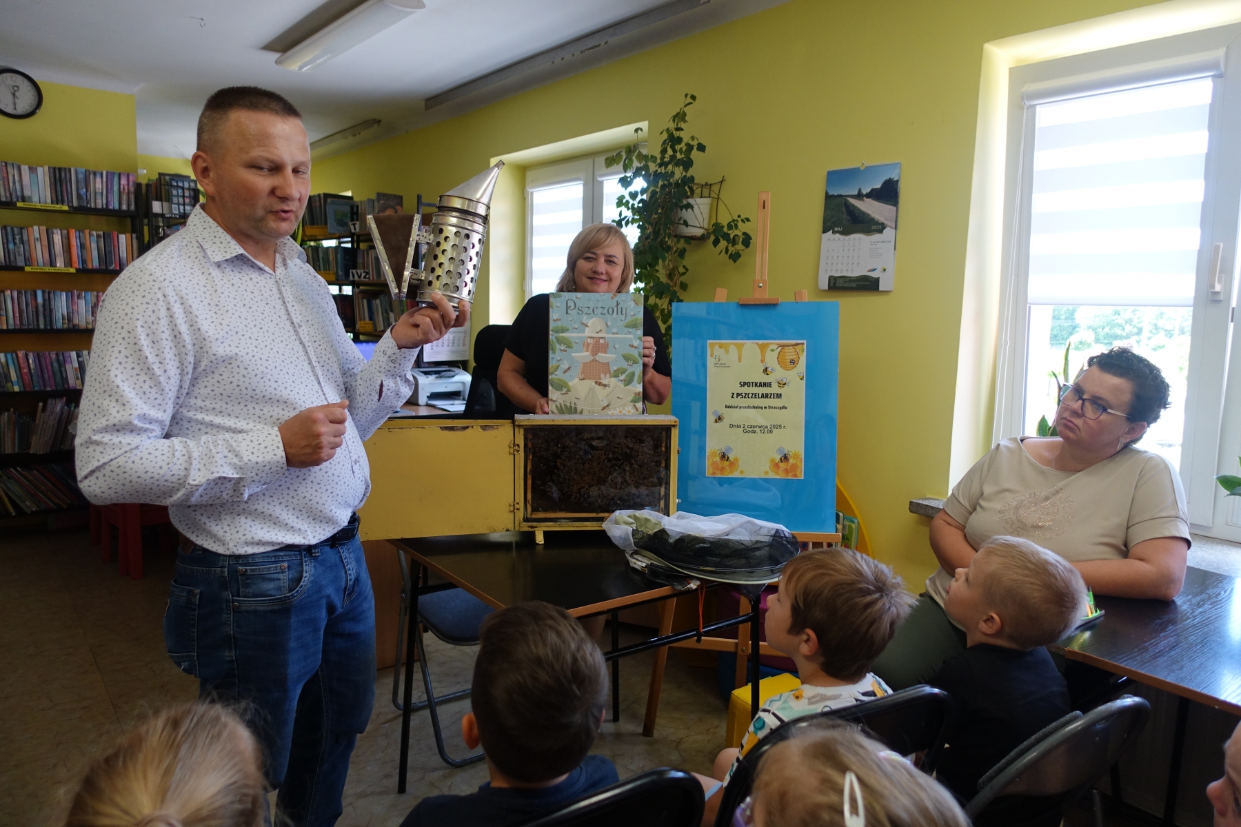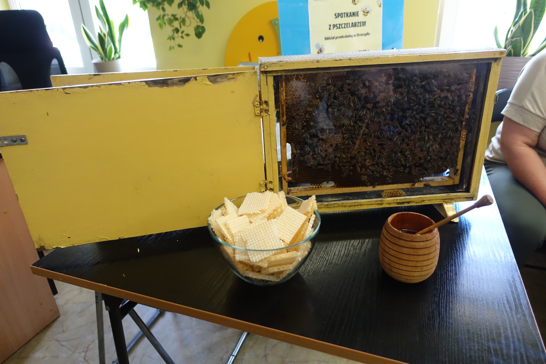 Dzięki opowieściom lokalnego pszczelarza pana Piotra Wilka przedszkolaki poznały wiele ciekawostek z życia pszczół, ich fascynujący świat, a przede wszystkim mogły podziwiać je na żywo. Przyniesione bowiem zostały w specjalnej ramce. Dzieci poznały etapy rozwoju pszczoły, dowiedziały się, jaką rolę w ulu pełni królowa, robotnice, kim jest truteń…, jak i gdzie pszczoły przenoszą pyłek kwiatowy oraz jak powstaje miód. Miały przyjemność przymierzyć strój pszczelarza oraz obejrzeć przybory, których używa w swojej codziennej pracy, m.in. dymkę zwaną podkurzaczem Spotkanie zakończyło się degustacją miodu, które dzieci z wielką przyjemnością smakowały, znając jego odżywcze właściwości i walory smakowe.Najważniejszym jednak przesłaniem spotkania było uświadomienie najmłodszym, jak ważne jest istnienie pszczół dla ludzi.