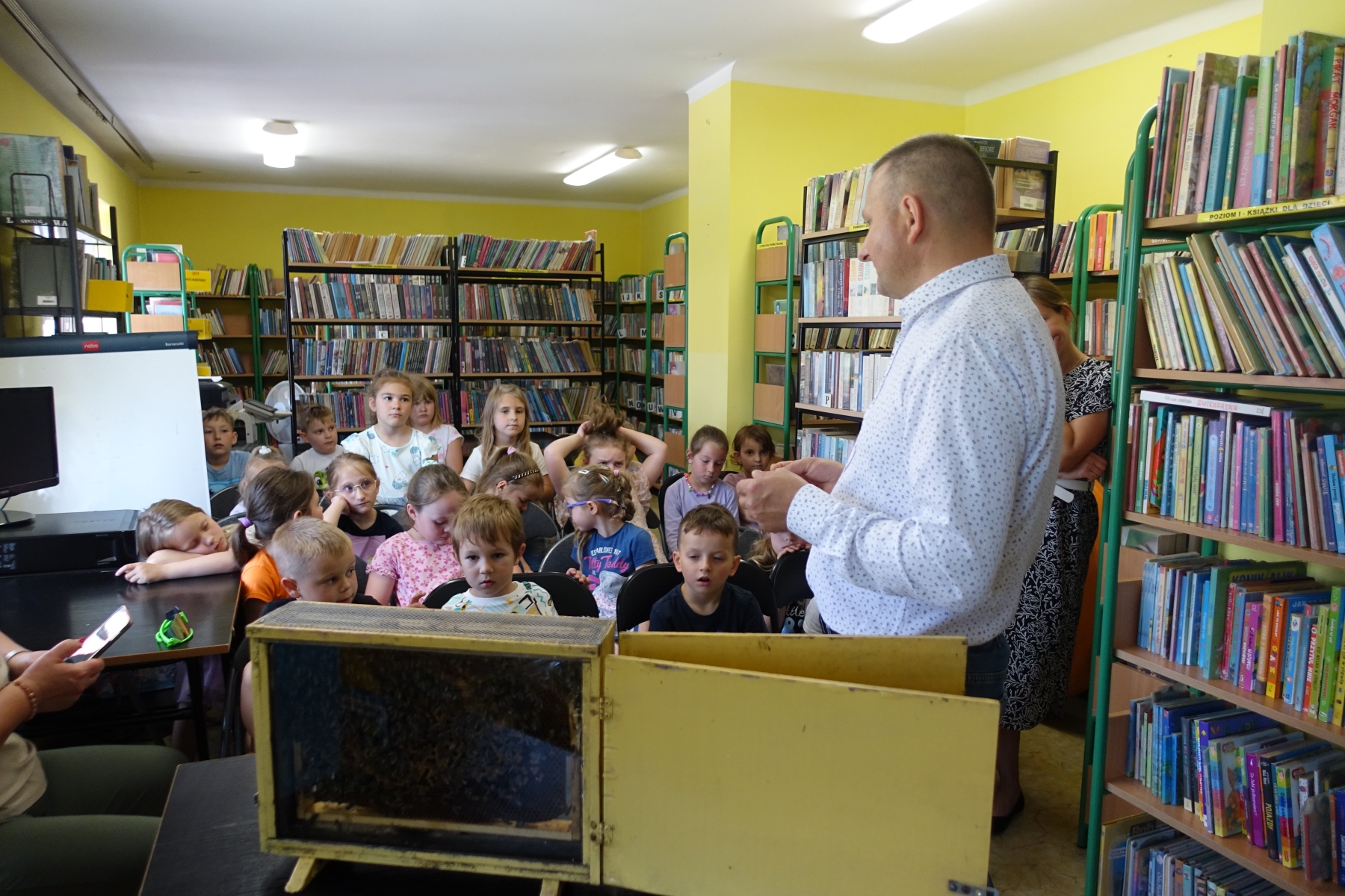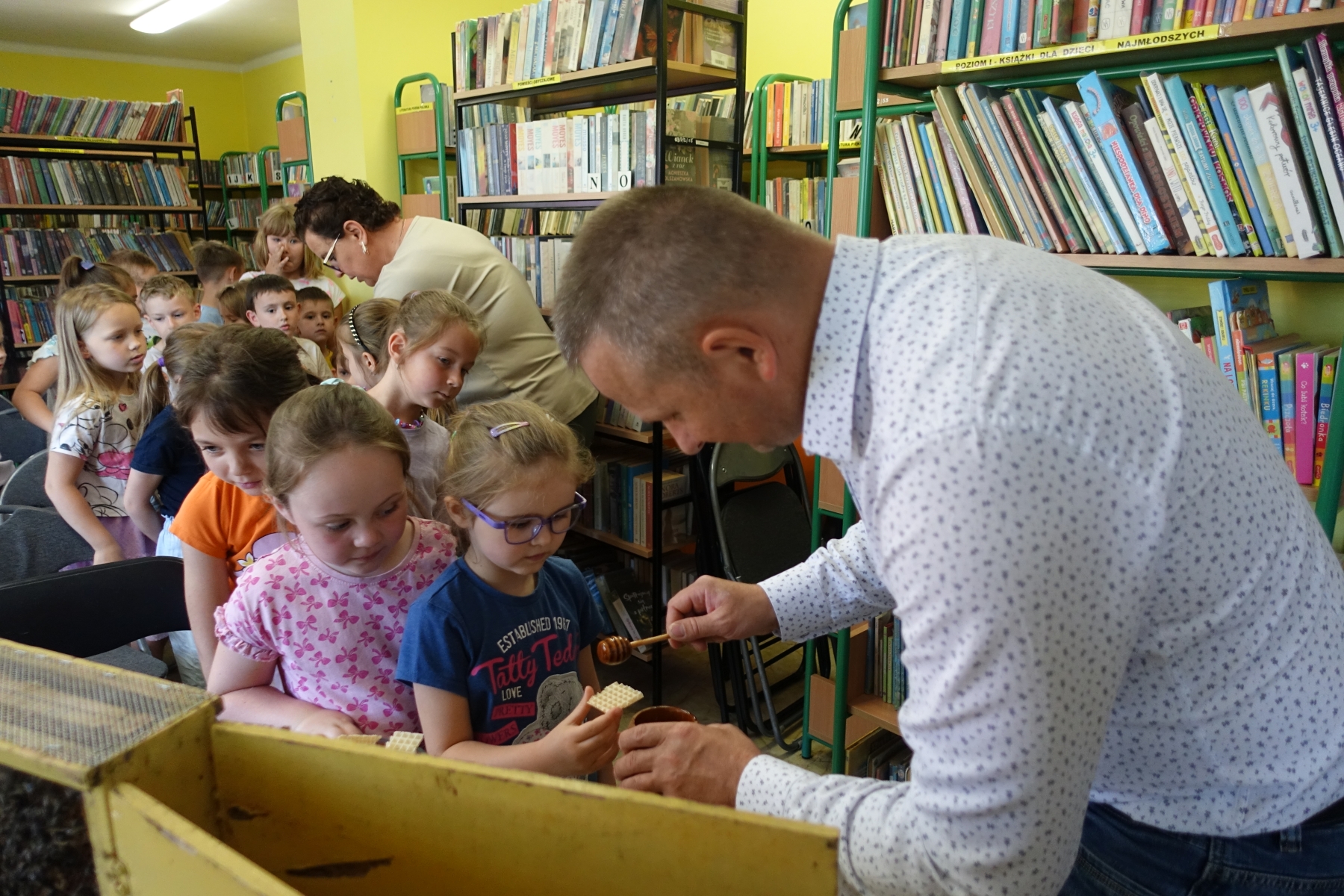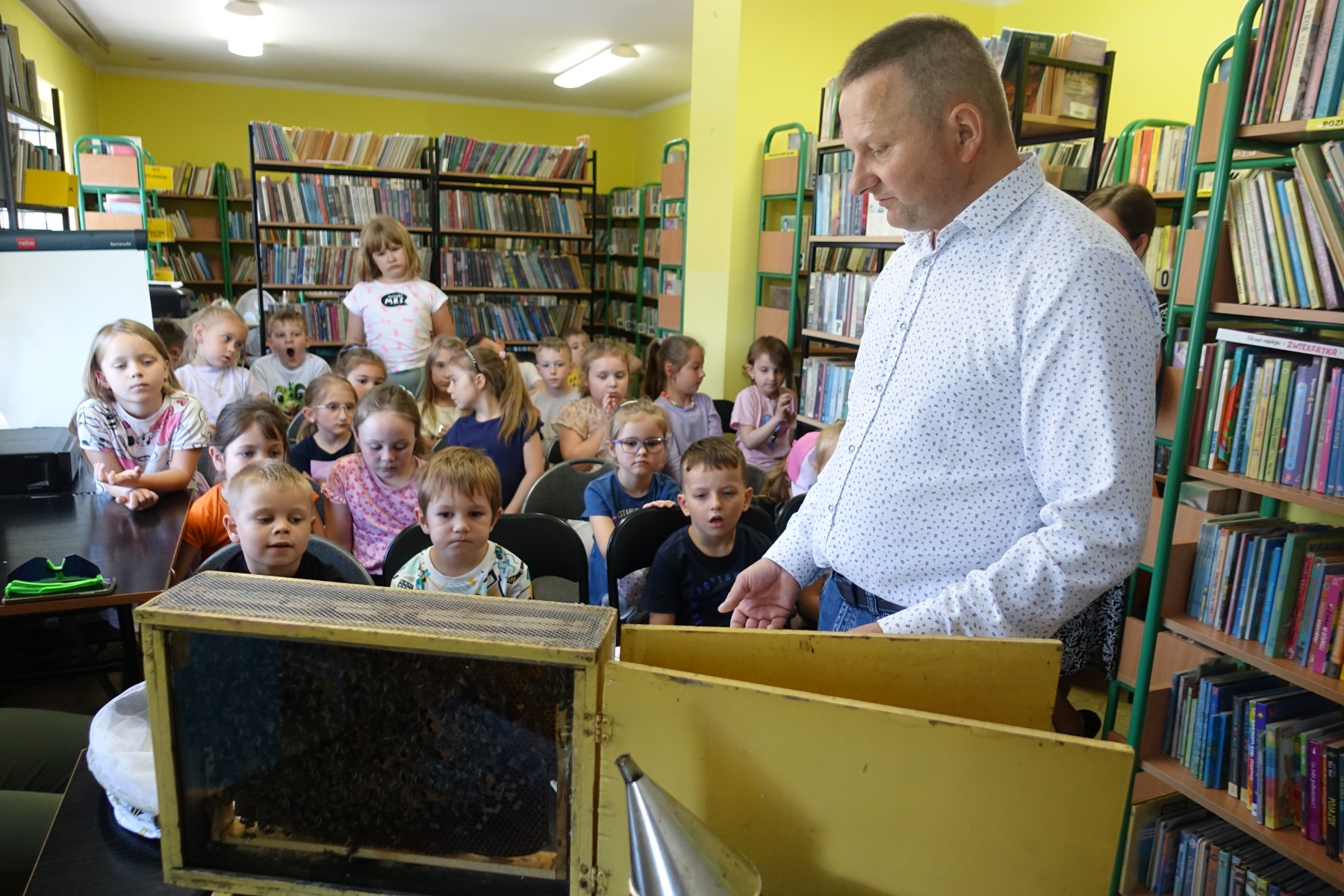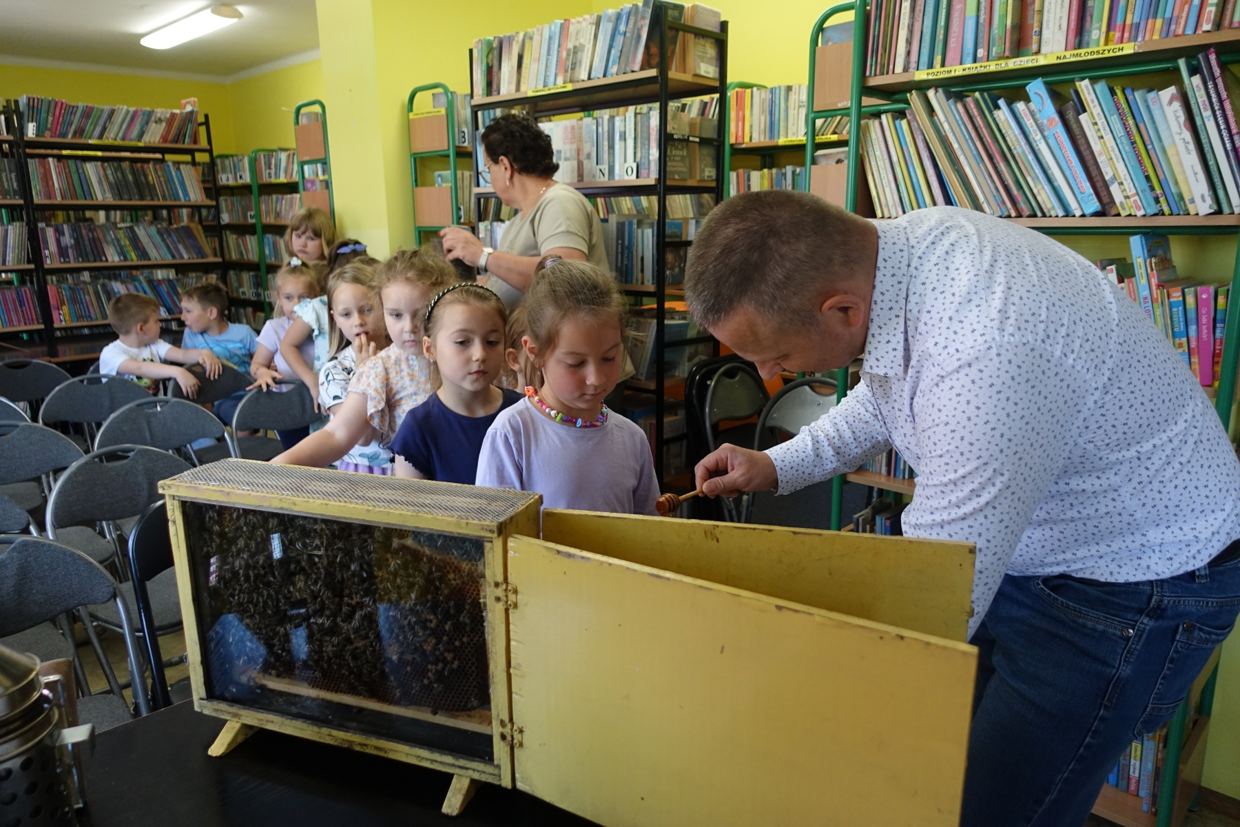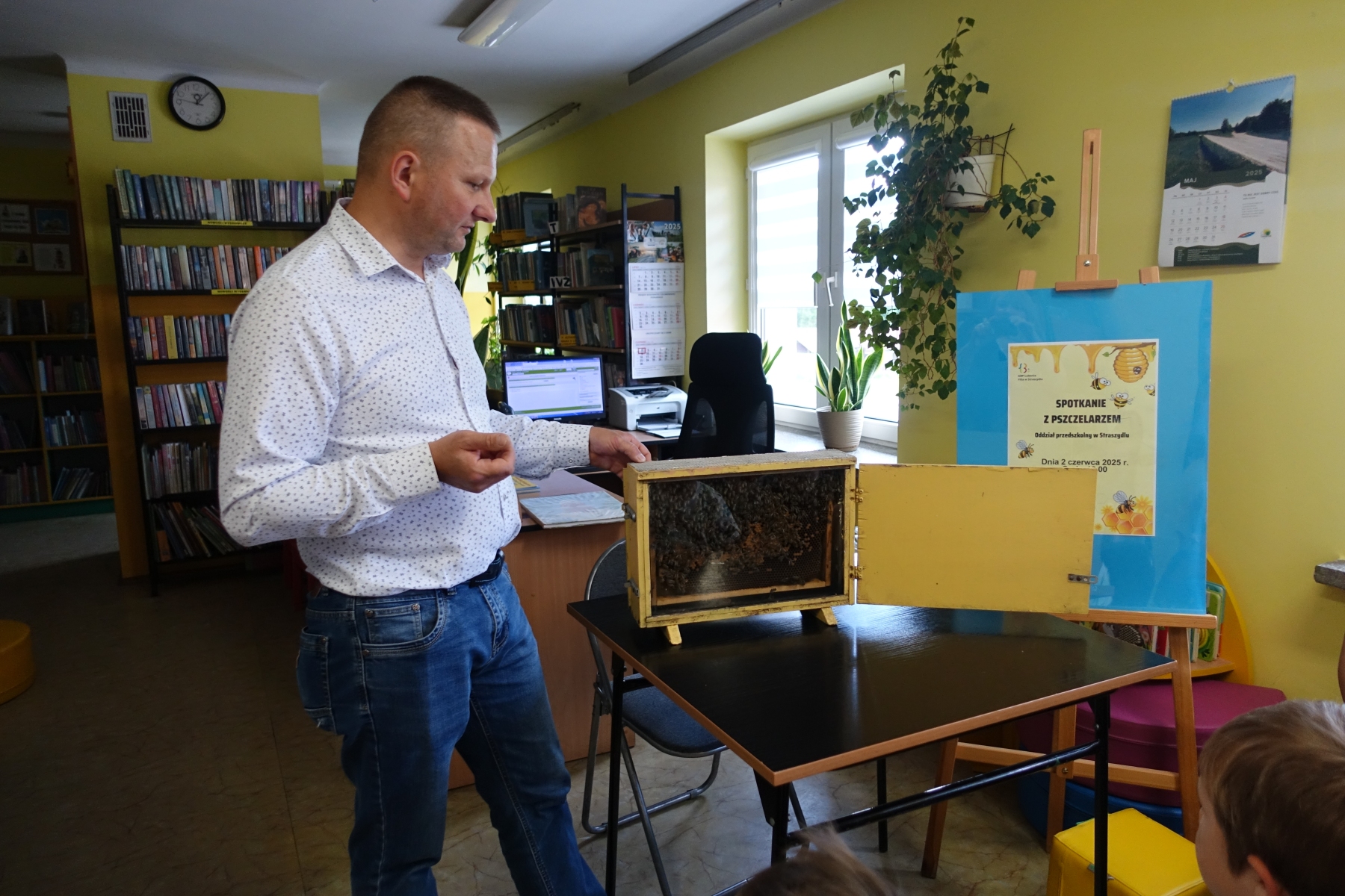 Dzięki opowieściom lokalnego pszczelarza pana Piotra Wilka przedszkolaki poznały wiele ciekawostek z życia pszczół, ich fascynujący świat, a przede wszystkim mogły podziwiać je na żywo. Przyniesione bowiem zostały w specjalnej ramce. Dzieci poznały etapy rozwoju pszczoły, dowiedziały się, jaką rolę w ulu pełni królowa, robotnice, kim jest truteń…, jak i gdzie pszczoły przenoszą pyłek kwiatowy oraz jak powstaje miód. Miały przyjemność przymierzyć strój pszczelarza oraz obejrzeć przybory, których używa w swojej codziennej pracy, m.in. dymkę zwaną podkurzaczem Spotkanie zakończyło się degustacją miodu, które dzieci z wielką przyjemnością smakowały, znając jego odżywcze właściwości i walory smakowe.Najważniejszym jednak przesłaniem spotkania było uświadomienie najmłodszym, jak ważne jest istnienie pszczół dla ludzi.