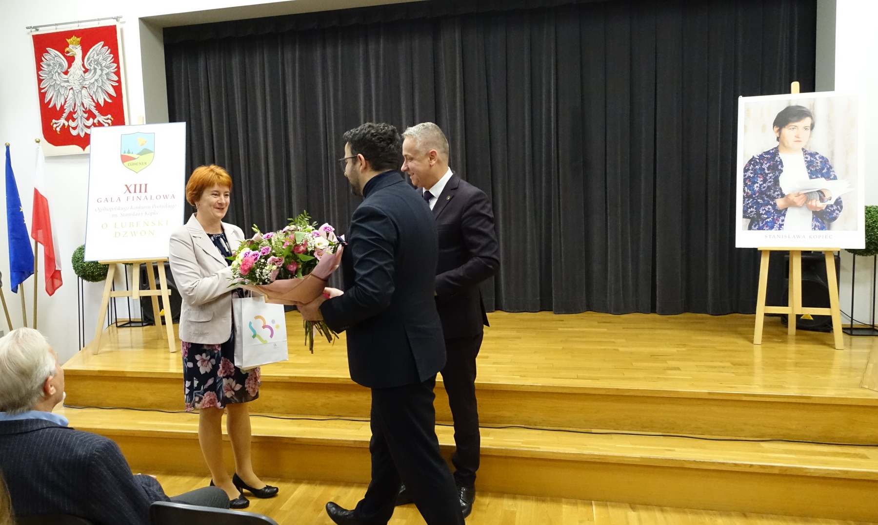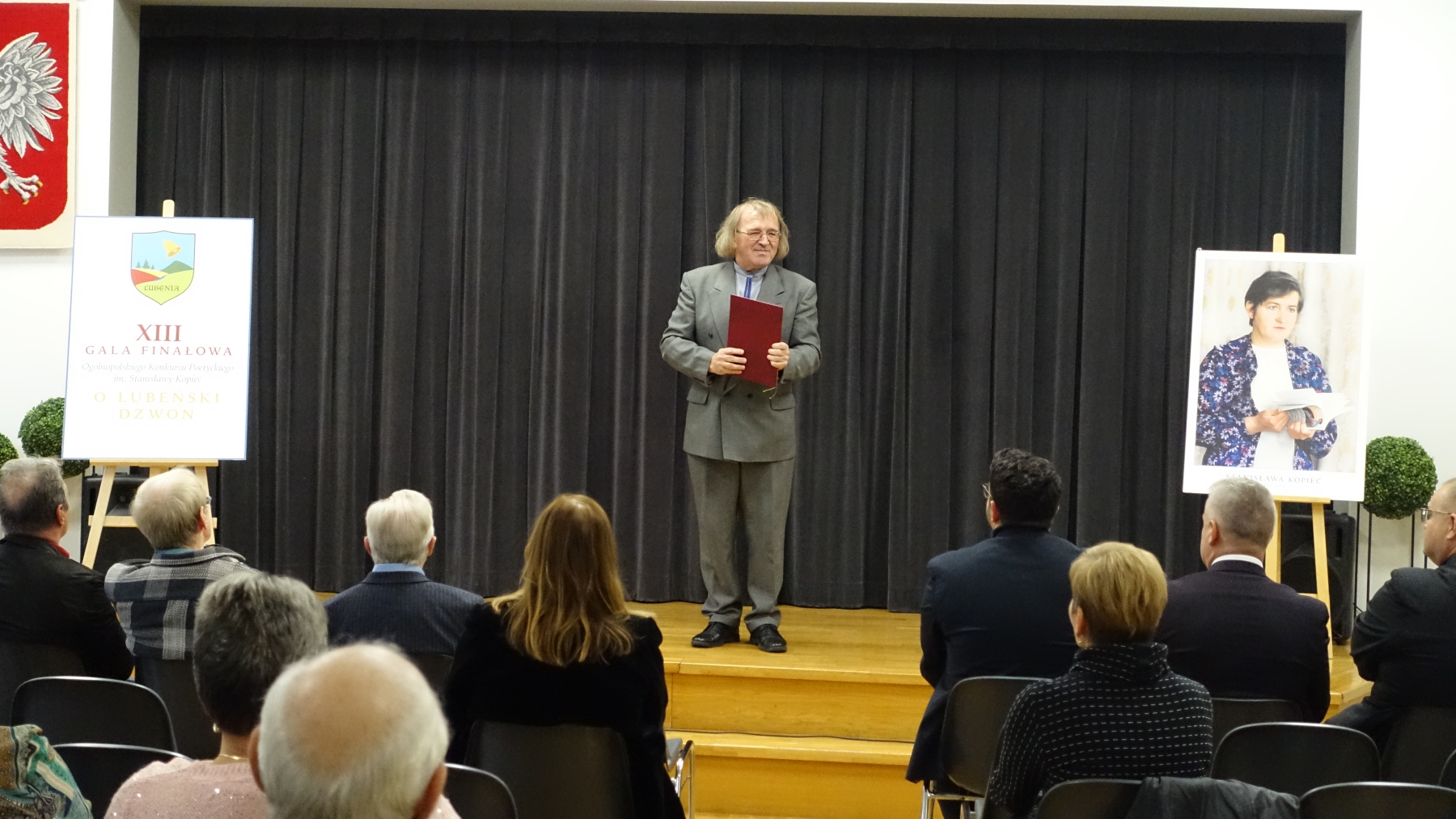 17 października 2025 roku w sali Gminnego Ośrodka Kultury w Lubeni odbyła się uroczysta XIII gala finałowa Ogólnopolskiego Konkursu Poetyckiego im. Stanisławy Kopiec „O lubeński dzwon” 🔔. To wydarzenie od lat stanowi ważny punkt w kalendarzu kulturalnym regionu, przyciągając miłośników poezji z całej Polski.Konkurs, organizowany przez Gminną Bibliotekę Publiczną w Lubeni, Starostwo Powiatowe, Urząd Gminy Lubenia oraz Gminny Ośrodek Kultury w Lubeni powstał, by uczcić pamięć Stanisławy Kopiec – poetki, której twórczość na trwałe wpisała się w pejzaż kulturowy Podkarpacia.W tegorocznej gali wzięli udział licznie przybyli goście: przedstawiciele władz samorządowych, rodzina poetki, laureaci konkursu, członkowie Komisji Konkursowej, zaproszeni goście, a także mieszkańcy Lubeni i okolic.Po oficjalnym rozpoczęciu uroczystości głos zabrał prof. Jan Wolski – przewodniczący Komisji Konkursowej. Profesor, który od pierwszej edycji przewodniczy obradom Jury, podsumował tegoroczny konkurs i podkreślił wysoki poziom nadesłanych prac.Następnie ogłoszono wyniki konkursu i Pan Krzysztof Jarosz Starosta Rzeszowski wraz z wójtem Adamem Skoczylasem wręczyli nagrody. Laureaci mieli okazję zaprezentować swoje wiersze oraz krótko opowiedzieć o inspiracjach i twórczej drodze.Podczas gali głos zabrał także Aleksander Bielenda, który opowiedział o swojej nowej książce. W ramach miłej niespodzianki wręczył XIX-wieczny dzwonek poetce z Lubeni Marzenie Cupryś traktując go jako symboliczny znak ciągłości poetyckiej tradycji i hołd dla patronki konkursu – Stanisławy Kopiec.Artystycznym dopełnieniem wydarzenia był poruszający spektakl „Niebieski wóz” wg Stanisławy Kopiec w wykonaniu Teatru Poezji Inscenizowanej Wydziału Filologicznego Uniwersytetu Rzeszowskiego w reżyserii Pana Janusza Pokrywki. Występ spotkał się z gorącym przyjęciem publiczności, a szczególną niespodzianką był udział w przedstawieniu prof. Jana Wolskiego, który tym razem wystąpił również w roli aktora.Uroczystość zakończyła się zaproszeniem na poczęstunek, który stał się okazją do rozmów, wymiany wrażeń i integracji uczestników.Serdeczne podziękowania kierujemy do wszystkich, którzy przyczynili się do przygotowania wydarzenia. Szczególne słowa wdzięczności kierujemy do firmy “BRUNI”, która ufundowała piękną statuetkę konkursową, symbolizującą dźwięk poetyckiego dzwonu rozbrzmiewającego w Lubeni.Tegoroczna gala po raz kolejny potwierdziła, że pamięć o Stanisławie Kopiec trwa, a poezja – niczym lubeński dzwon – rozbrzmiewa wciąż na nowo, łącząc ludzi wrażliwych na piękno słowa.