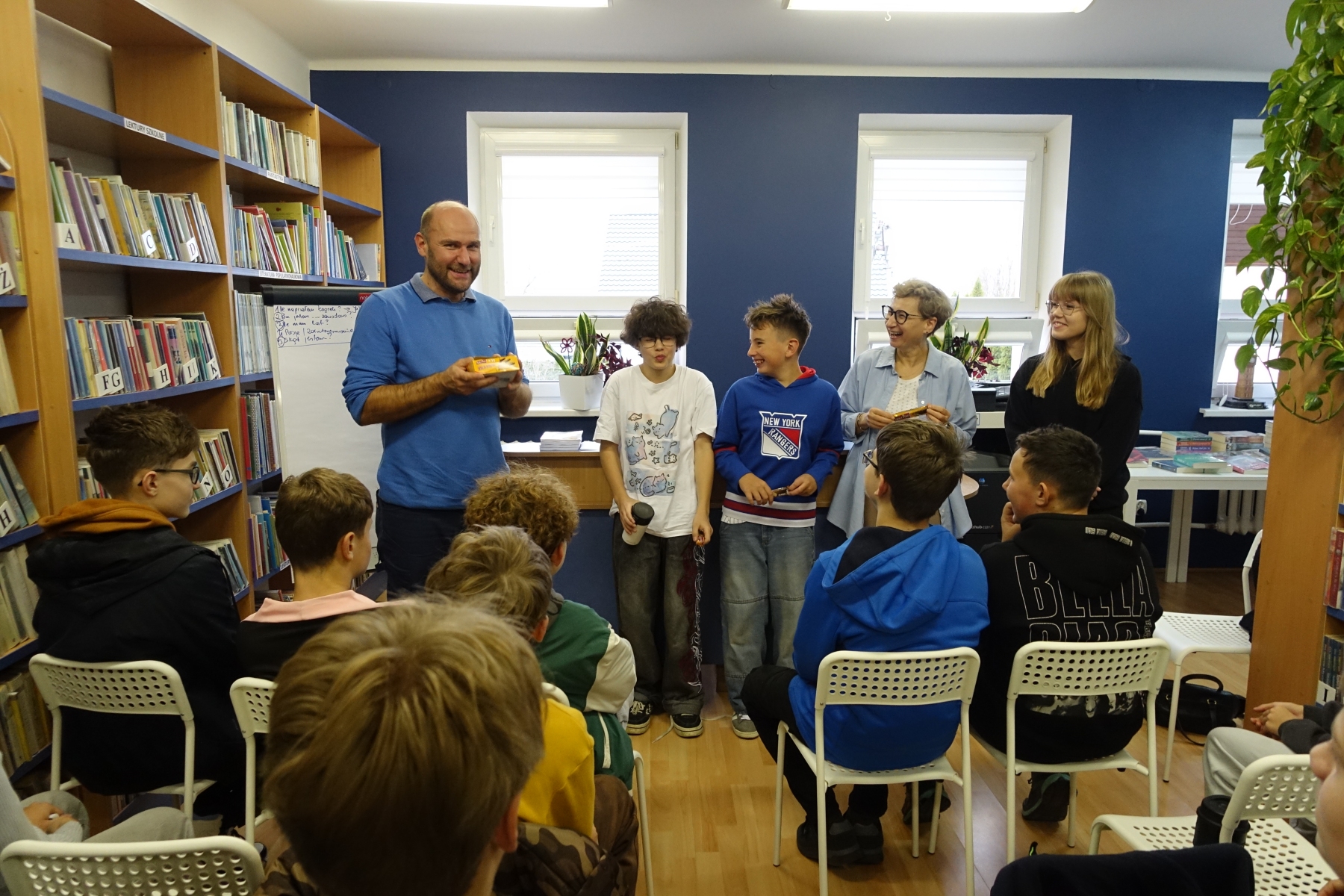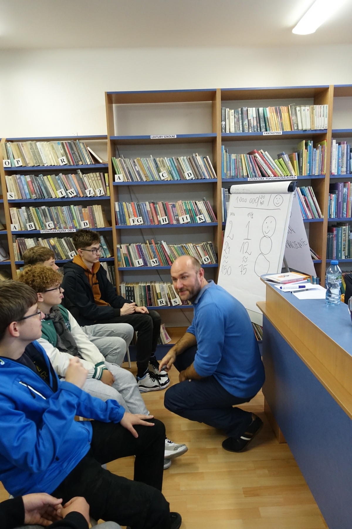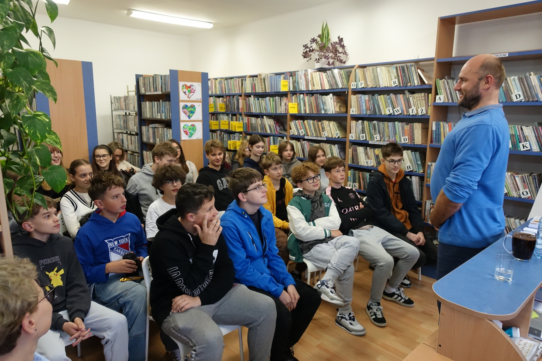 3 listopada w filii Biblioteki Publicznej w Siedliskach odbyło się spotkanie autorskie z Jackiem Łapińskim – autorem książek: „Dlaczego warto czytać?!”, „Z uśmiechem Ci do twarzy! Dobry humor to lepsze życie” oraz „Jak być lepszym w życiu prywatnym i zawodowym”. Uczestnikami byli uczniowie kl. VII i VIII Szkoły Podstawowej w Siedliskach. Podczas spotkania z młodzieżą autor podkreślał, jak ważne jest czytanie książek, wskazywał wymierne korzyści z czytania. Podkreślał, jak ważne w życiu każdego człowieka jest posiadanie i rozwijanie pasji, która może być kluczem do osiągnięcia sukcesu w życiu osobistym. Prowadzący przekonywał, że podstawową korzyścią z czytania jest rozwijanie intelektu, co w dorosłym życiu przełoży się na znalezienie satysfakcjonującej pracy. Zachęcał uczestników do regularnego sięgania po literaturę jako sposób na poszerzanie horyzontów, rozwijanie empatii oraz kreowanie własnych pasji i zainteresowań. Spotkanie przebiegło w bardzo miłej atmosferze. Uczniowie byli zainteresowani opowieściami oraz radami dotyczącymi czytelnictwa. Spotkanie z panem Jackiem Łapińskim było nie tylko edukacyjnym doświadczeniem, ale także inspiracją do dalszego odkrywania świata poprzez książki.