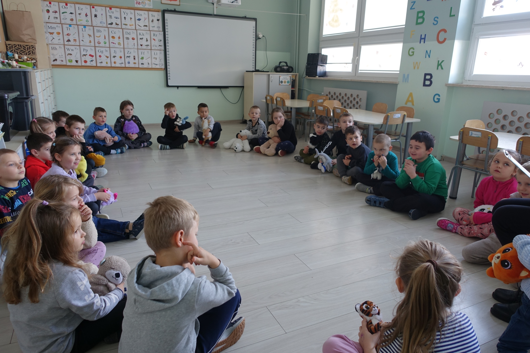 Światowy Dzień Pluszowego Misia obchodzimy 25 listopada i właśnie z tej okazji odbyło się spotkanie z zerówką. Pluszowy Miś to symbol dzieciństwa, ulubiona zabawka najmłodszych. Wszystkie dzieci kochają pluszowe misie więc nic dziwnego, że to one, doczekały się swojego święta. Wraz z dziećmi pojawiły się w szkole misie. Po krótkim powitaniu i przedstawieniu swoich pupili, została przybliżona historia powstania pluszowego misia oraz bohaterów znanych bajek, książek i filmów. Po zabawie z misiem, wszyscy z wielką uwagą wysłuchali fragmentu książki „Biblioteka bajek – portret przyjaźni”, którego bohaterami był Kubuś Puchatek wraz z przyjaciółmi. Następnie dzieci bawiły się układając misiowe puzzle, odgadywały zagadki, a także brały udział w zabawie z kodowaniem. Na zakończenie spotkania dzieciaki otrzymały pamiątkowe misiowe zakładki. Ten dzień był pełen uśmiechu oraz wspólnej, misiowej zabawy.