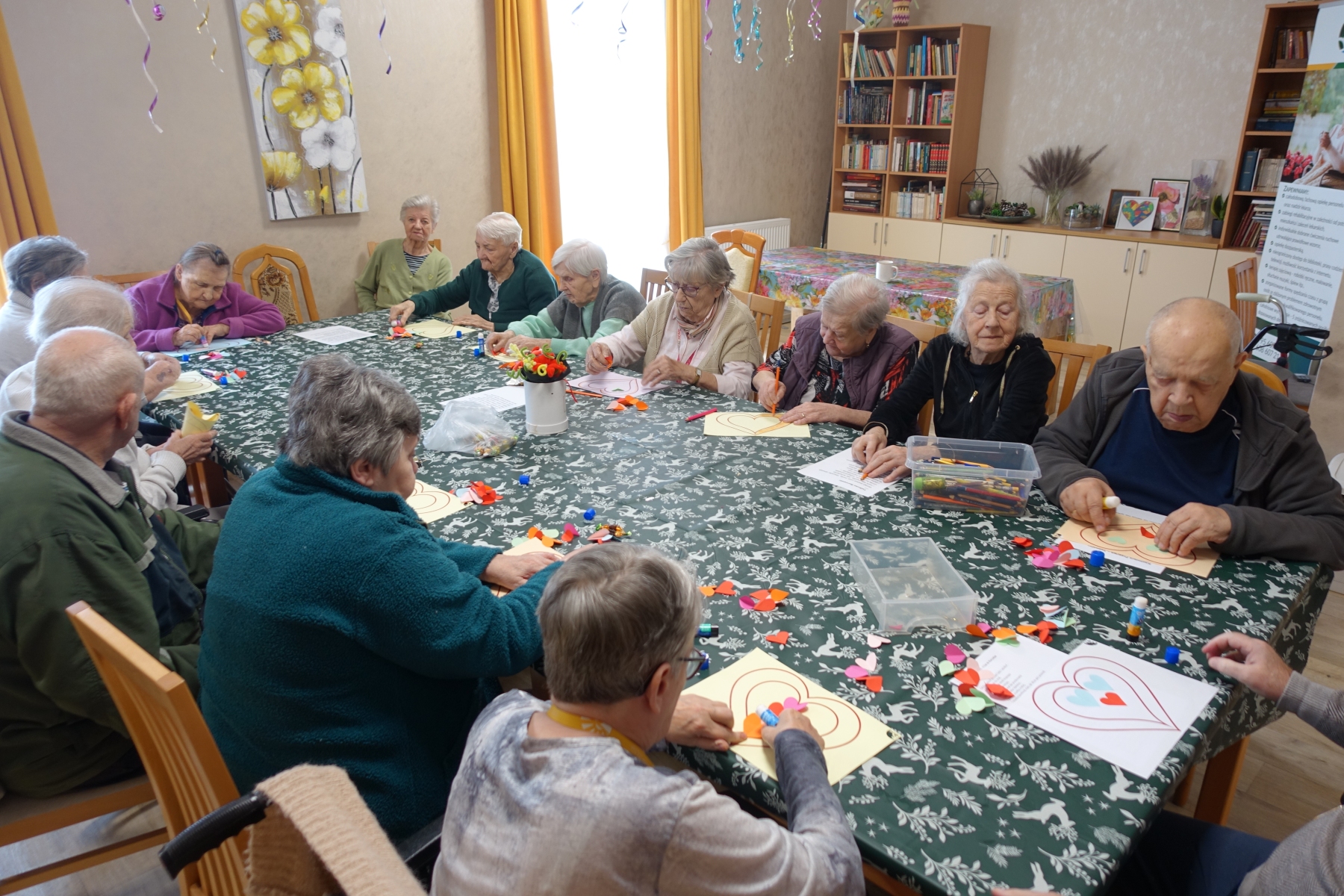 Tematem dzisiejszego spotkania w Domu Seniora w Siedliskach były WALENTYNKI. W trakcie przybliżono krótką historię walentynek. Seniorzy dowiedzieli się, że święto to wywodzi się z czasów starożytnego Rzymu, a jego patronem jest św. Walenty – biskup, który pomagał zakochanym i stał się symbolem miłości oraz oddania. W ramach ciekawostek wspomniano o różnych zwyczajach walentynkowych na świecie – od wymiany ręcznie pisanych listów w Wielkiej Brytanii, po spektakularne pokazy fajerwerków w Japonii. Aby podkreślić romantyczny nastrój, w tle rozbrzmiewały niezapomniane piosenki o miłości z lat 50. i 60. – seniorzy chętnie włączyli się w śpiew. Muzyka przeniosła uczestników w czasy ich młodości, wywołując uśmiechy i wzruszenia. Na zakończenie spotkania seniorzy czytali poezję walentynkową oraz wykonali prace plastyczne. To wyjątkowe spotkanie przypomniało wszystkim, że miłość i serdeczność są ponadczasowe i można je okazywać każdego dnia.
