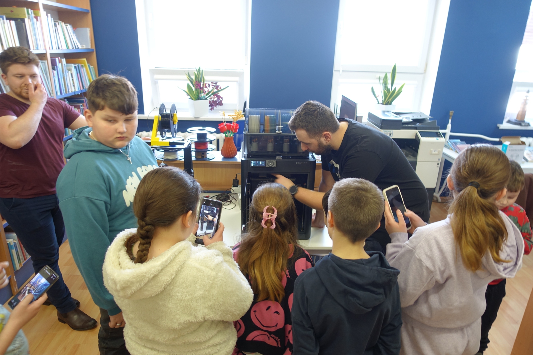 Wtorkowe zajęcia były poświęcone drukowi 3D, które przeprowadzili panowie z Ośmiodruk. Dzieci poznały pełny proces tworzenia wydruków 3D. Dowiedziały się o sposobach pozyskiwania i przygotowywania modeli do druku, wyborze odpowiedniej technologii i metodach wydruku, monitorowaniu przebiegu wydruku oraz finalizacji całego procesu. Zobaczyły także drukarkę w „akcji”. To była prawdziwa lekcja przyszłości, która rozbudziła kreatywność i pokazała, jak technologia może wspierać naukę. Na zakończenie dzieciaki otrzymały piękne pamiątki wydrukowane oczywiście na drukarce 3D 🙂