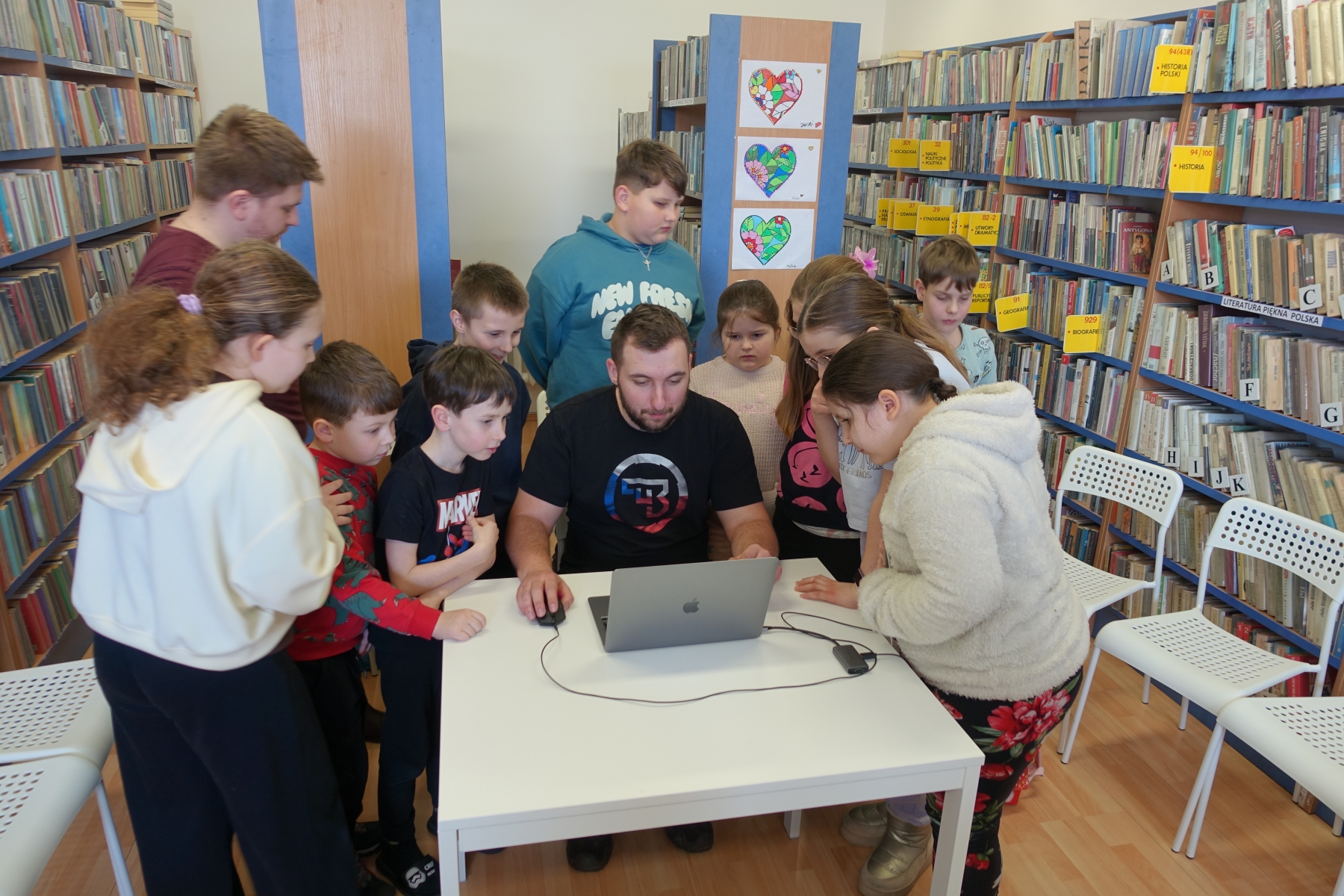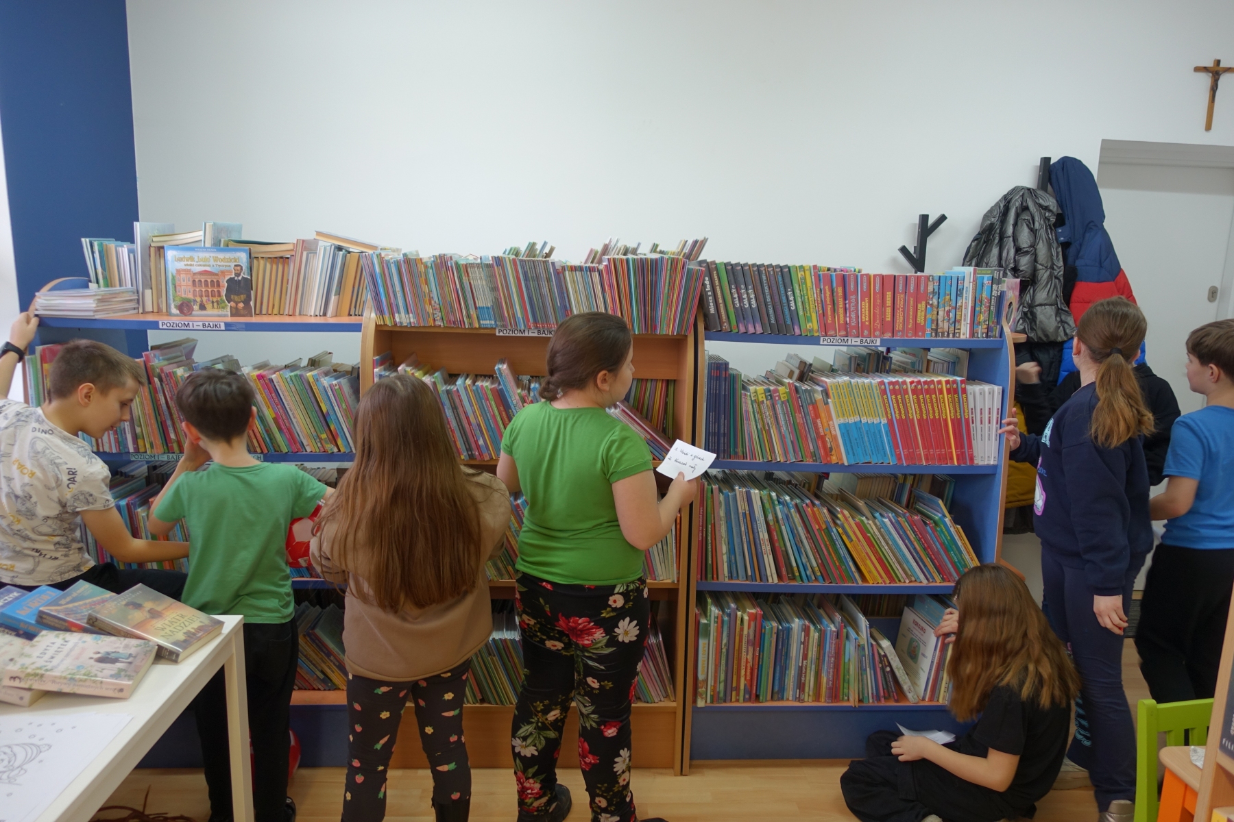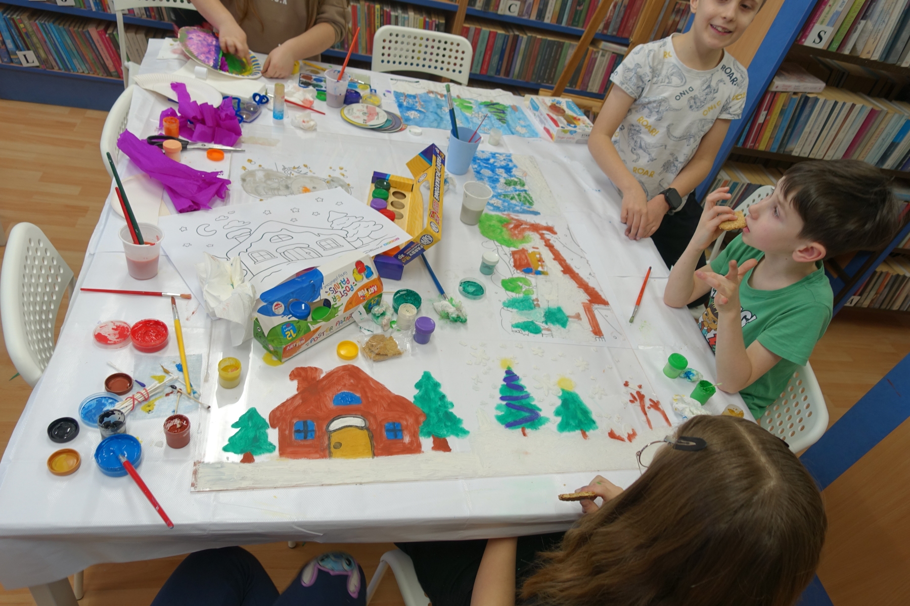 Środa. Dzień plastyczno – literacki 🙂 Tematem przewodnim tego dnia była aktualna pora roku – zima. Zadaniem dzieciaków było stworzenie pejzażu zimowego. Podczas pracy wywiązały się ciekawe rozmowy na różne tematy. Były zagadki, ciekawostki. Uczestnicy zajęć chętnie dzielili się swoją wiedzą. Następnie dzieci zostały podzielone na grupki i zamieniły się w poszukiwaczy książek o określonej tematyce. Dzieci chętnie podejmowały wyzwania za co zostały nagrodzone upominkami. To był bardzo mile spędzony czas.