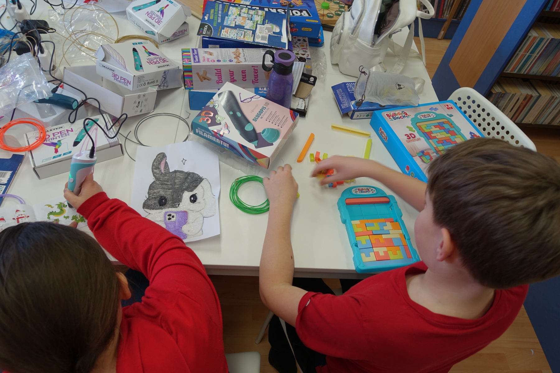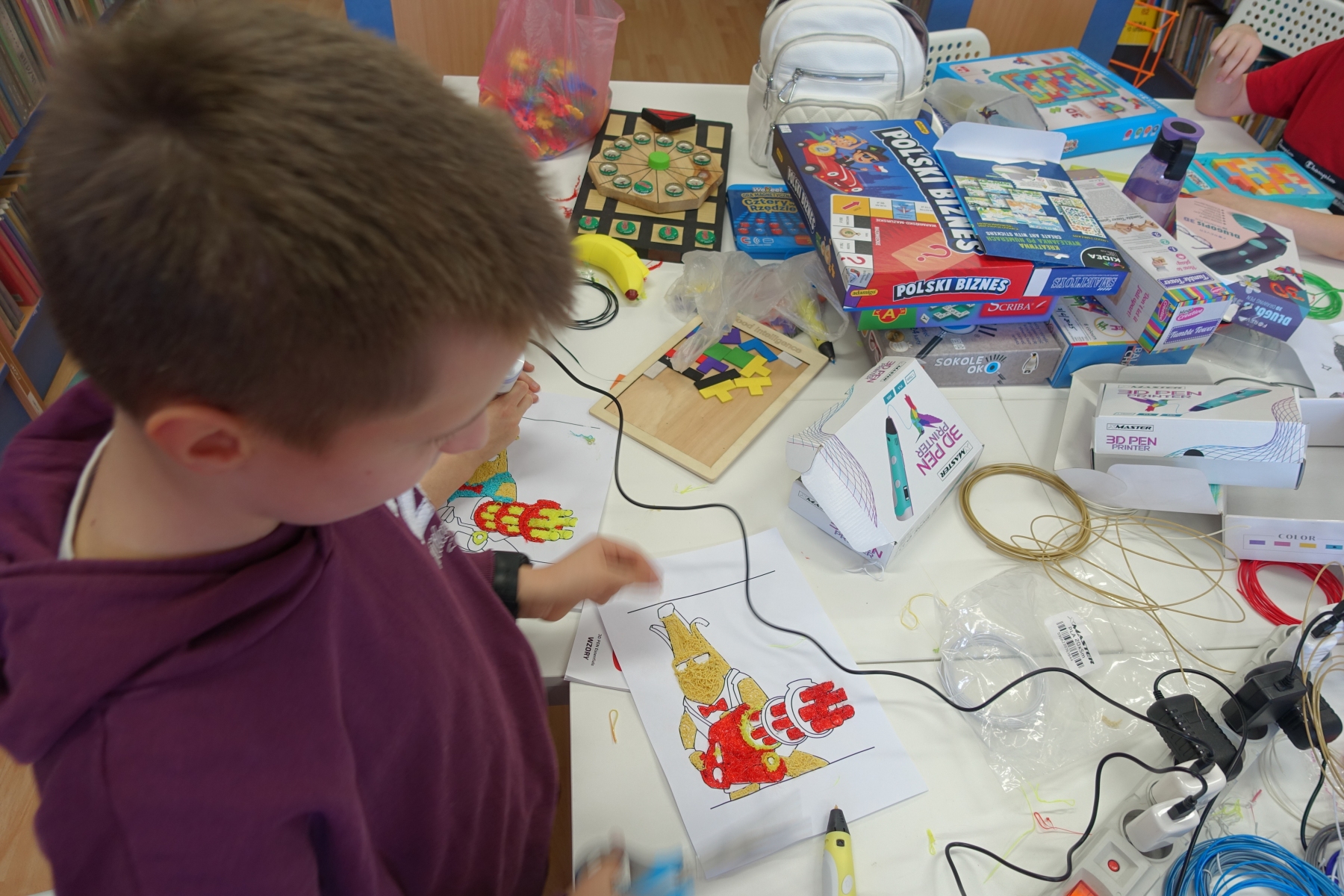 Czwartkowe popołudnie to czas kreatywności. Dzieci miały do wyboru wiele gier, a także długopisy 3D, które cieszyły się bardzo dużym zainteresowaniem. Dzieciaki tworzyły piękne prace. Chętnie brały udział w zabawach. Okazały się bardzo twórcze w swoich pracach.