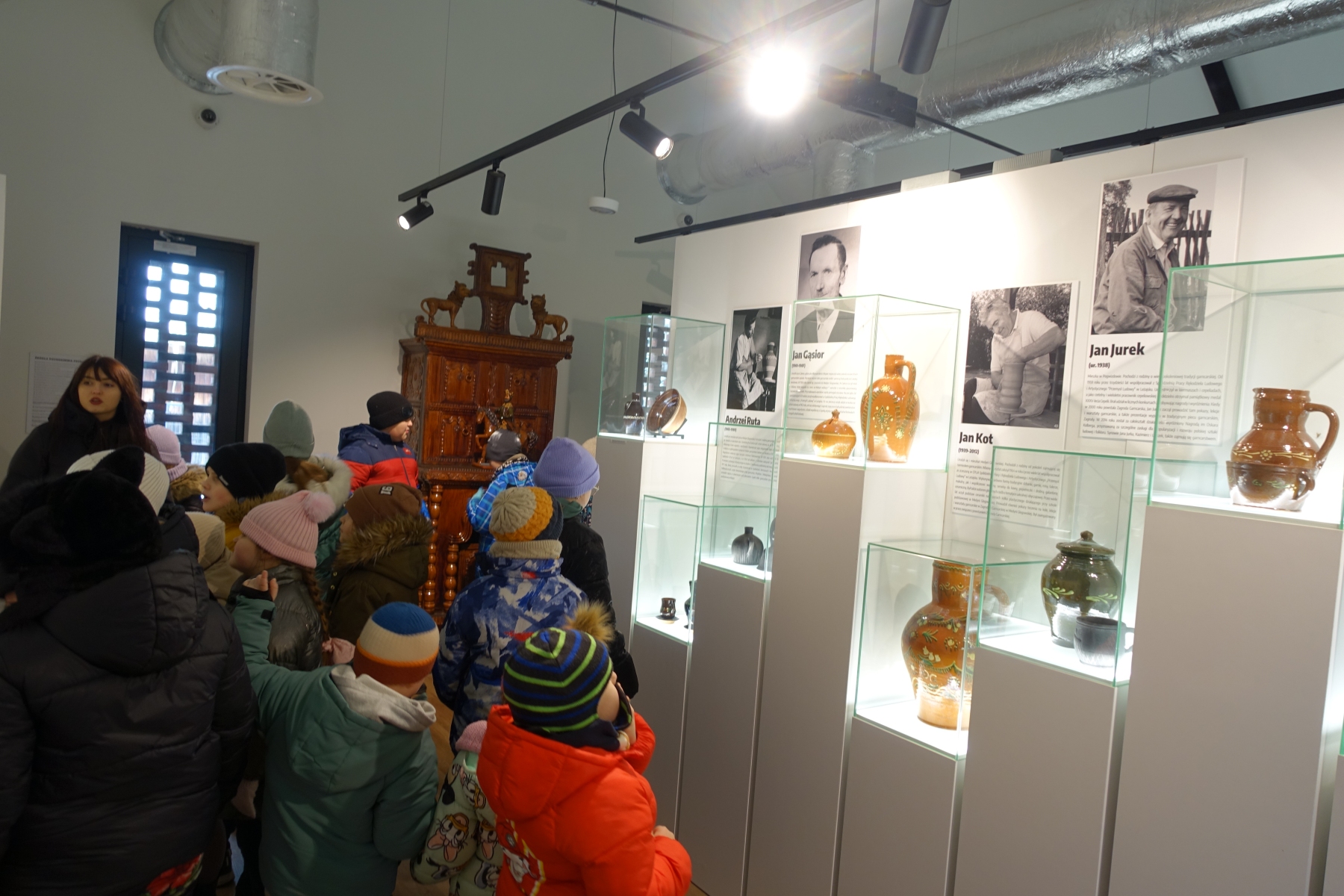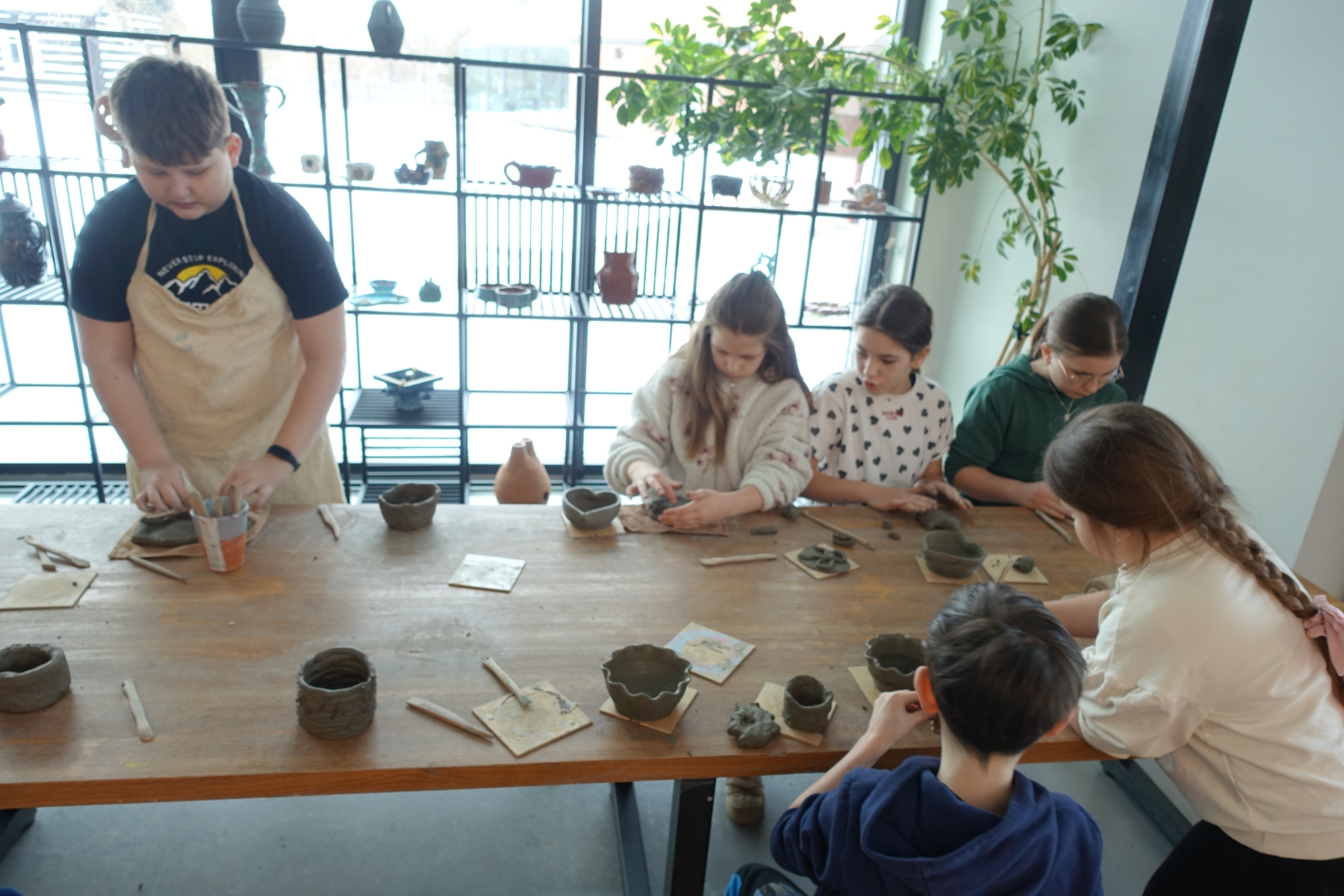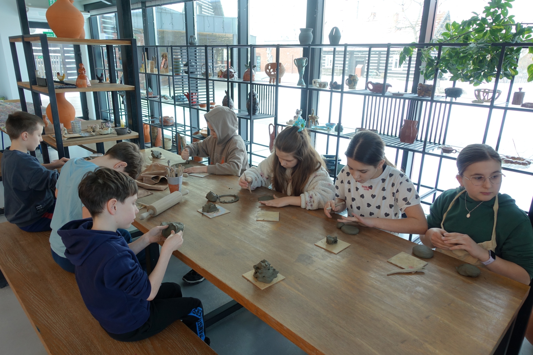 W ostatnim dniu naszych zajęć odwiedziliśmy Ośrodek Garncarski w Medyni Głogowskiej.Dzieci zwiedziły XIX- wieczną zagrodę garncarską, przedmioty codziennego użytku, które dawniej wykorzystywano do pracy w polu i gospodarstwie. Współczesne ceglane budynki mieszczą dużą pracownię, ekspozycję ceramiki, piece garncarskie i sklep z ceramiką. W jednym z nich uczniowie obejrzeli film, który przybliżył im czasy z XIX i początki XX wieku jak rozwijało się garncarstwo w Medyni. Dużą frajdą dla dzieci było uczestniczenie w warsztatach garncarskich, podczas których, lepiły samodzielnie różne przedmioty z gliny, ponadto formowali kubki i miseczki o różnych kształtach na kole garncarskim. Wykazały się dużą pomysłowością i kreatywnością. Wykonane przedmioty dzieciaki zabrały do domu. Dziękujemy wszystkim uczestnikom za wspólnie spędzony czas podczas zajęć feryjnych oraz wspaniałą atmosferę 🙂