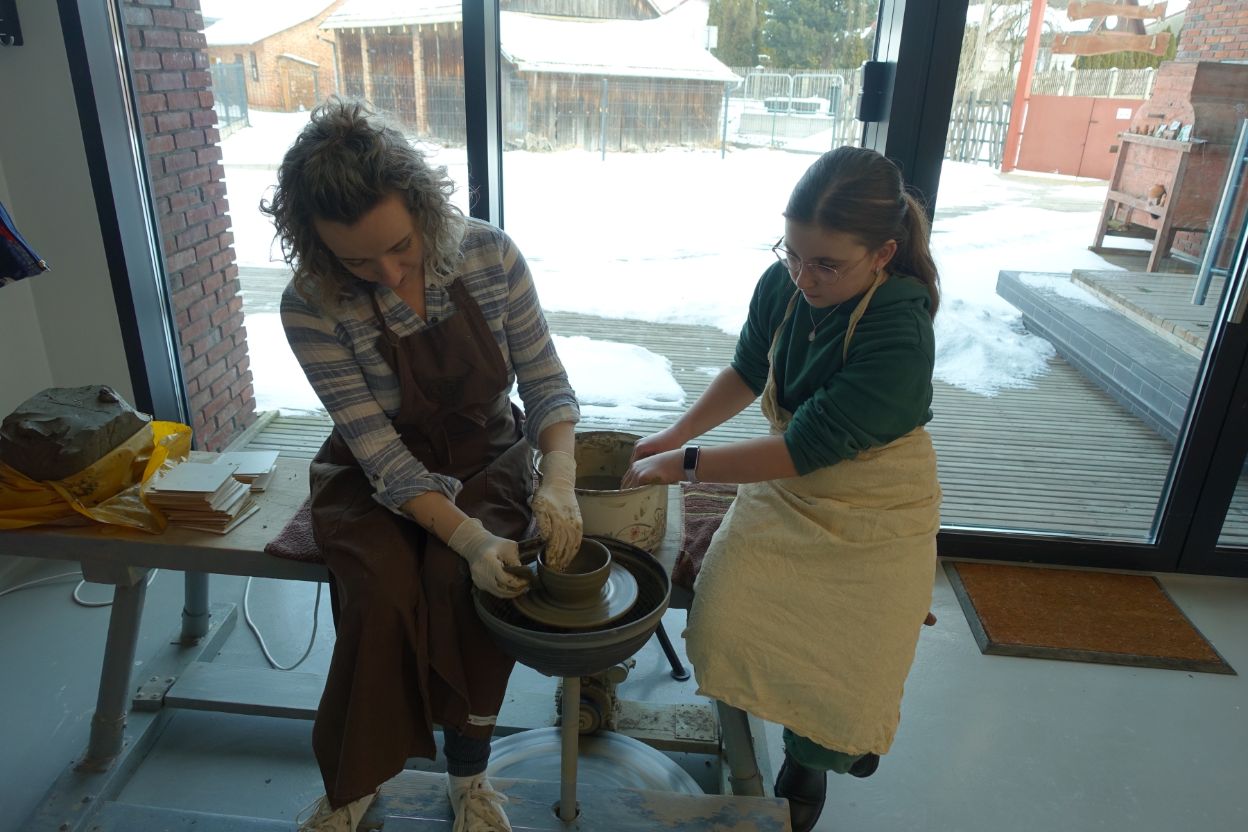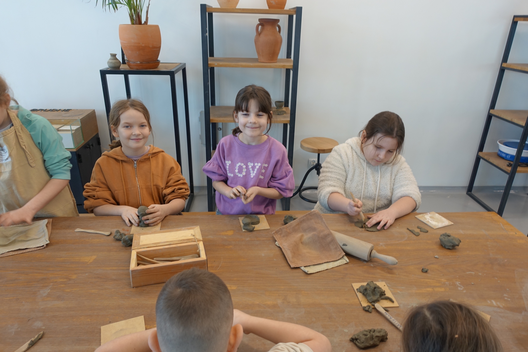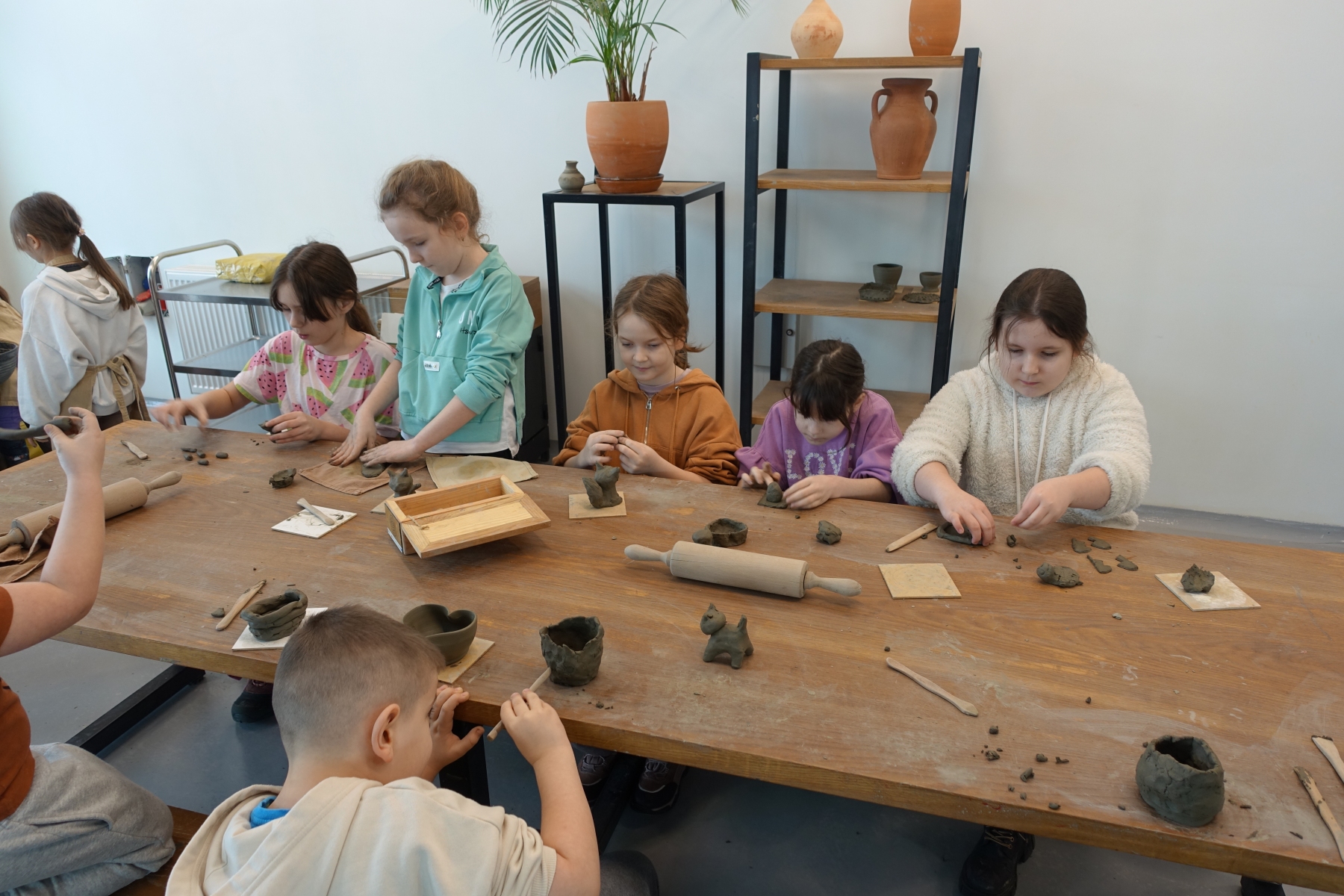 W ostatnim dniu naszych zajęć odwiedziliśmy Ośrodek Garncarski w Medyni Głogowskiej.Dzieci zwiedziły XIX- wieczną zagrodę garncarską, przedmioty codziennego użytku, które dawniej wykorzystywano do pracy w polu i gospodarstwie. Współczesne ceglane budynki mieszczą dużą pracownię, ekspozycję ceramiki, piece garncarskie i sklep z ceramiką. W jednym z nich uczniowie obejrzeli film, który przybliżył im czasy z XIX i początki XX wieku jak rozwijało się garncarstwo w Medyni. Dużą frajdą dla dzieci było uczestniczenie w warsztatach garncarskich, podczas których, lepiły samodzielnie różne przedmioty z gliny, ponadto formowali kubki i miseczki o różnych kształtach na kole garncarskim. Wykazały się dużą pomysłowością i kreatywnością. Wykonane przedmioty dzieciaki zabrały do domu. Dziękujemy wszystkim uczestnikom za wspólnie spędzony czas podczas zajęć feryjnych oraz wspaniałą atmosferę 🙂